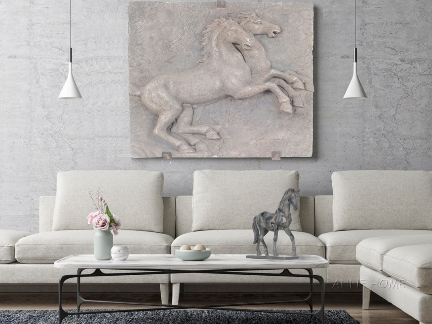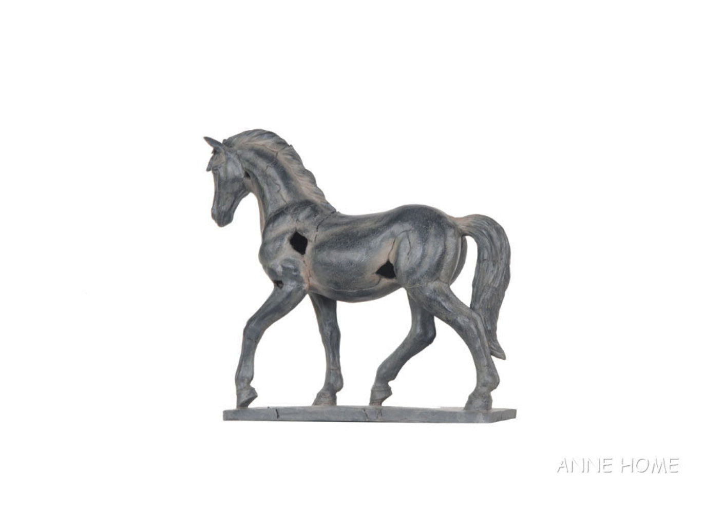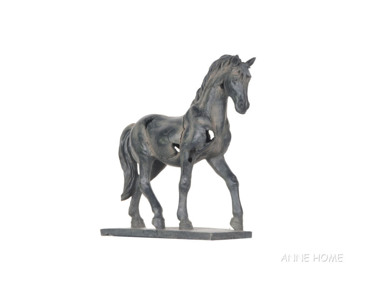 - Handmade resin horse statue with rustic textured finish
