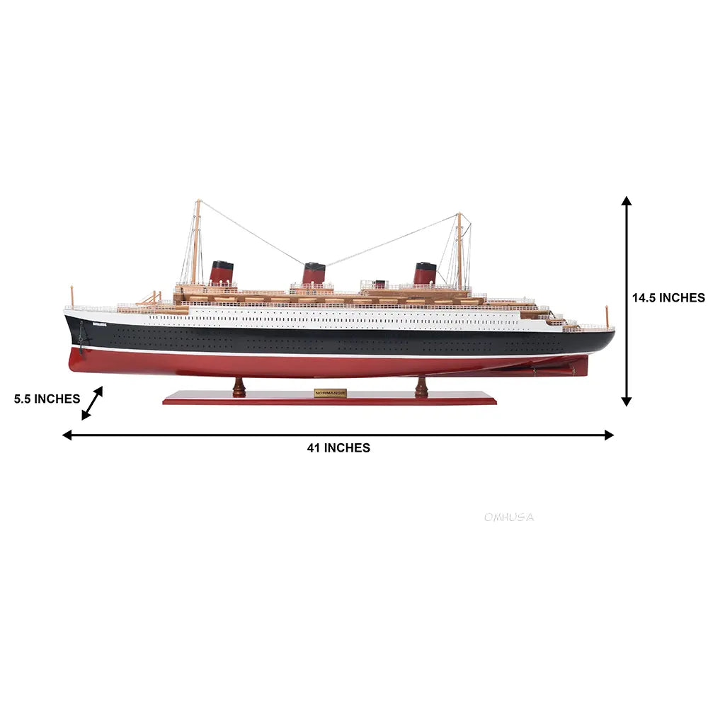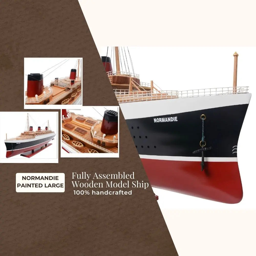 Normandie Painted Large Ship Model 14.5" – Handcrafted Wooden Replica – Display Decor By Old Modern Handicrafts
