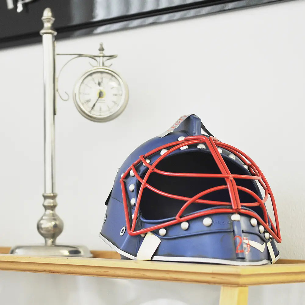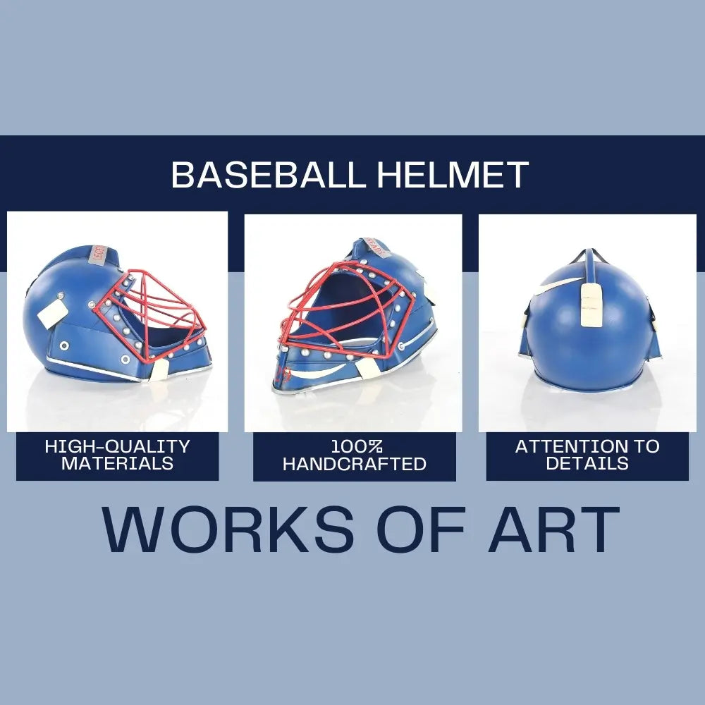 Bring a nostalgic touch to your space with this decorative baseball helmet, handcrafted from iron and painted in bold blue with white accents. Designed to mimic a traditional sports helmet, this sculptural piece adds character to any sports-themed room, shelf, or office desk. Whether you're a passionate fan or looking for a thoughtful gift, this iron helmet offers a timeless tribute to America's favorite pastime. Though not wearable, it serves as a unique conversation starter and a nod to your love for the game. Place it on a bookshelf, mantel, or in your home bar area for added flair. Perfect for baseball enthusiasts, collectors, or anyone wanting to elevate their space with sporty decor.