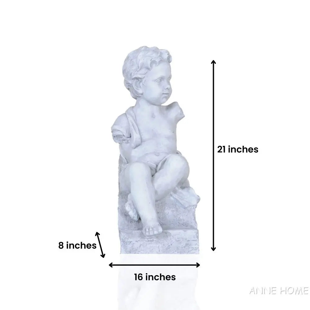 Bring timeless charm and gentle nostalgia to your outdoor or indoor space with the Old Modern Handicrafts Boy Sitting Statue from the Anne Home Collection. Expertly crafted from durable resin, this 21-inch-tall statue features a serene young boy sitting quietly—perfect for creating a peaceful corner on a garden bench, porch step, or entryway nook. With its neutral tones and detailed sculpting, this piece seamlessly blends into classic, cottage, or rustic-style décor. Measuring 21"H x 16"L x 8"W, it's a statement-making accent that captures the essence of quiet contemplation and vintage charm. Designed by Anne, an artist known for her elegant and joyful touch, this statue brings a graceful, storybook feel to your home or garden.