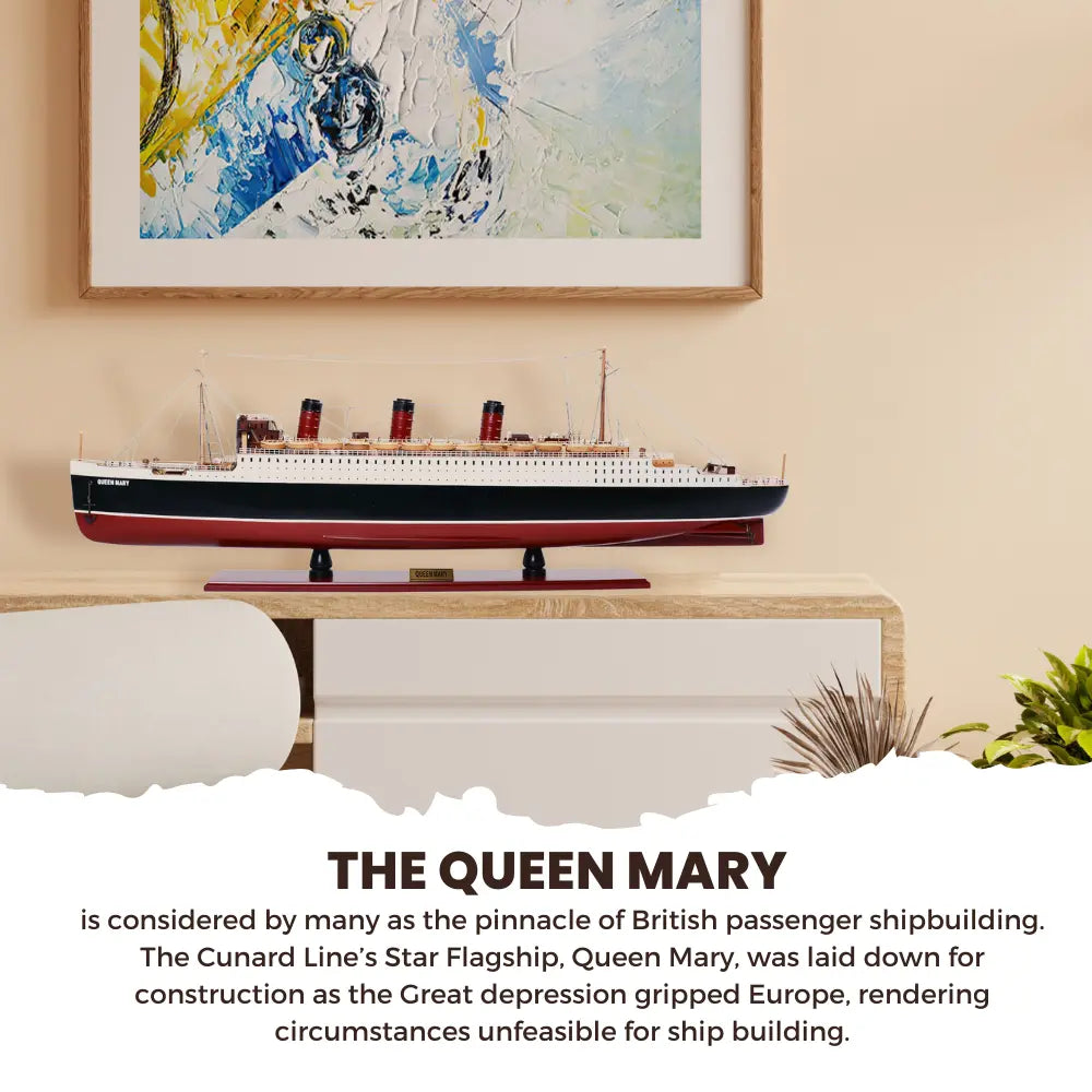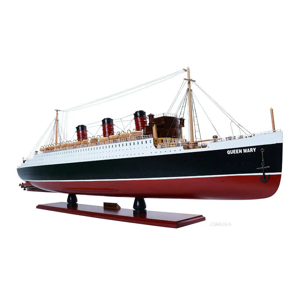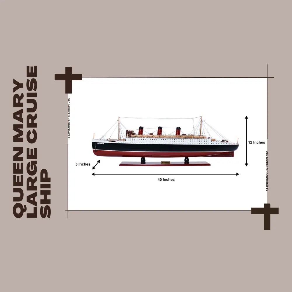 Experience the grandeur of classic ocean liners with the Old Modern Handicrafts Queen Mary Cruise Ship Model, a stunning 40-inch handcrafted replica of the legendary British liner. Measuring 12"H × 40"L × 5"W, this detailed model pays tribute to the original Queen Mary, celebrated for its luxurious interiors and unmatched speed during its reign in transatlantic travel.