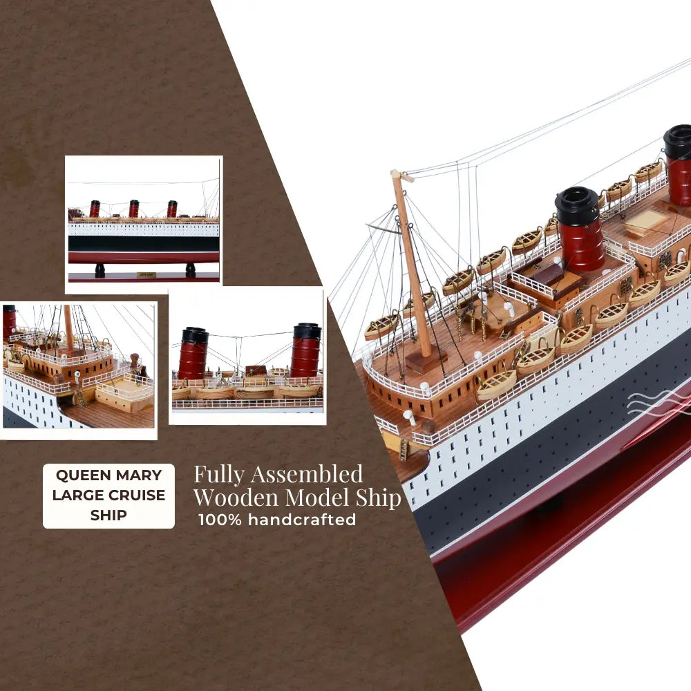 Old Modern Handicrafts Queen Mary Cruise Ship Model 40 Inch Handcrafted with Deck Details and Brass Fittings