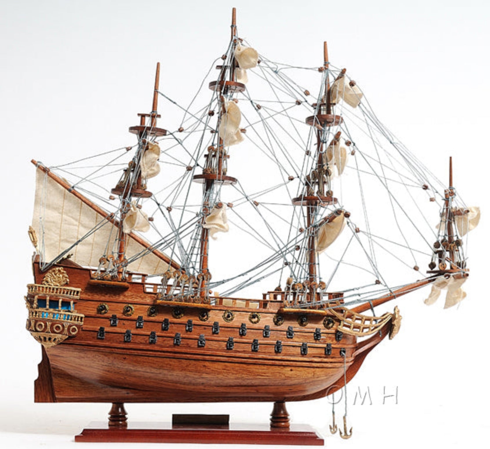 San Felipe Ship Model With Display Case – 49.75 Inches H Handcrafted Combo By Old Modern Handicrafts