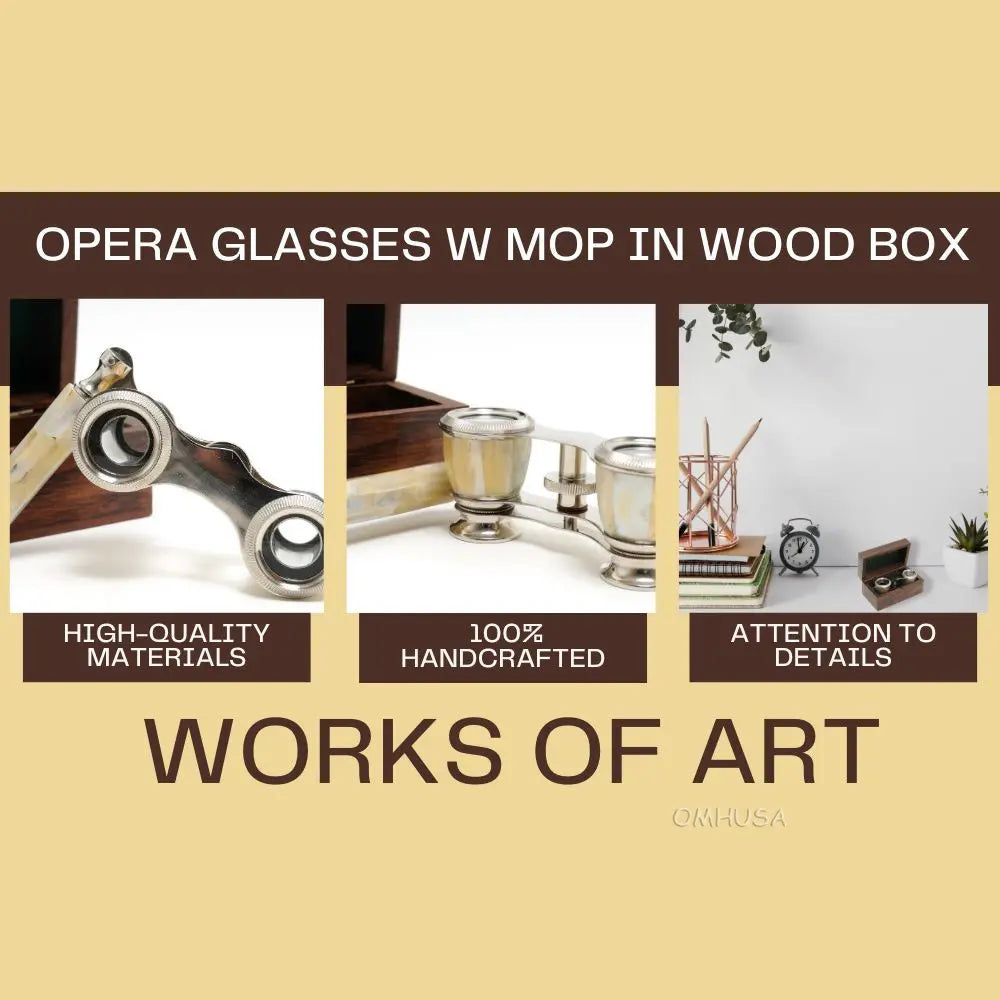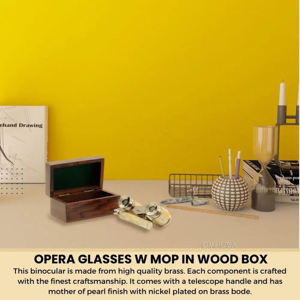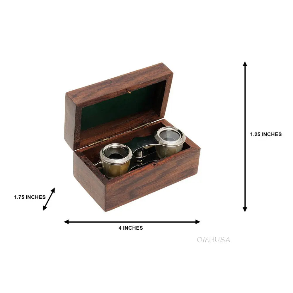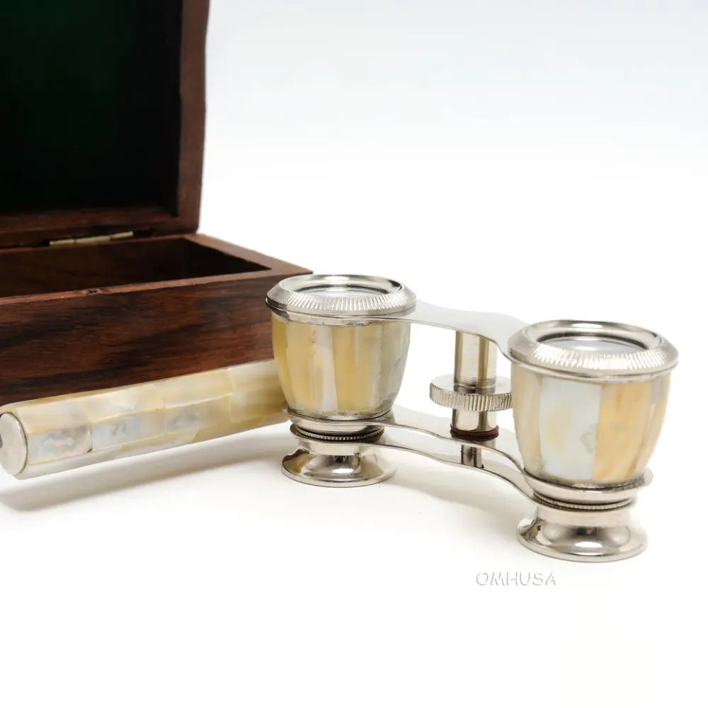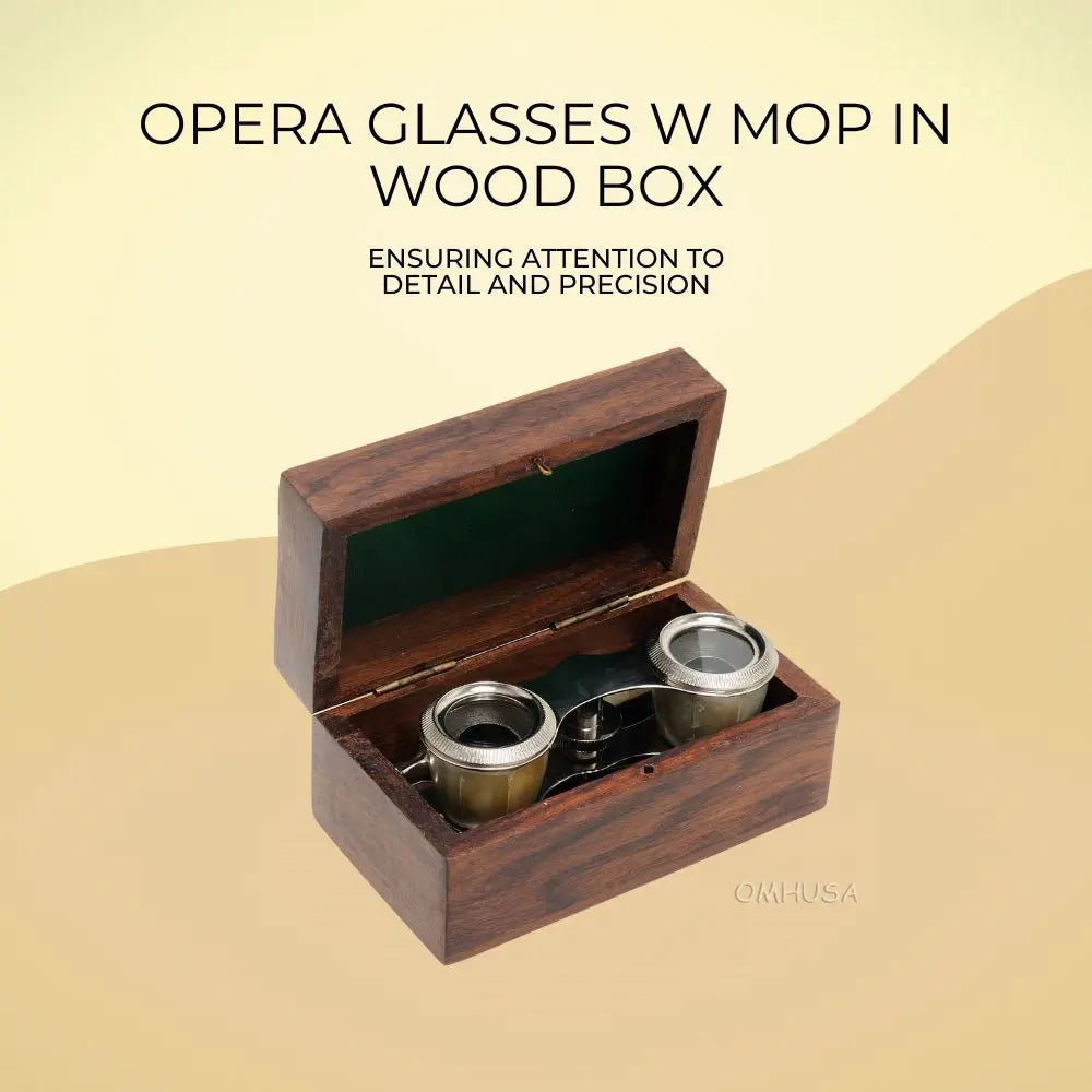 Opera Glasses – 1.25in Height – Mother of Pearl Finish in Wooden Box By Old Modern Handicrafts