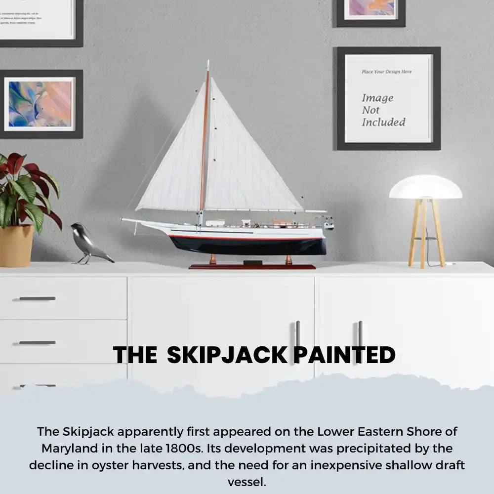 Skipjack Painted Wooden Sailboat Model L80 – Handcrafted 29 Inch Display By Old Modern Handicrafts