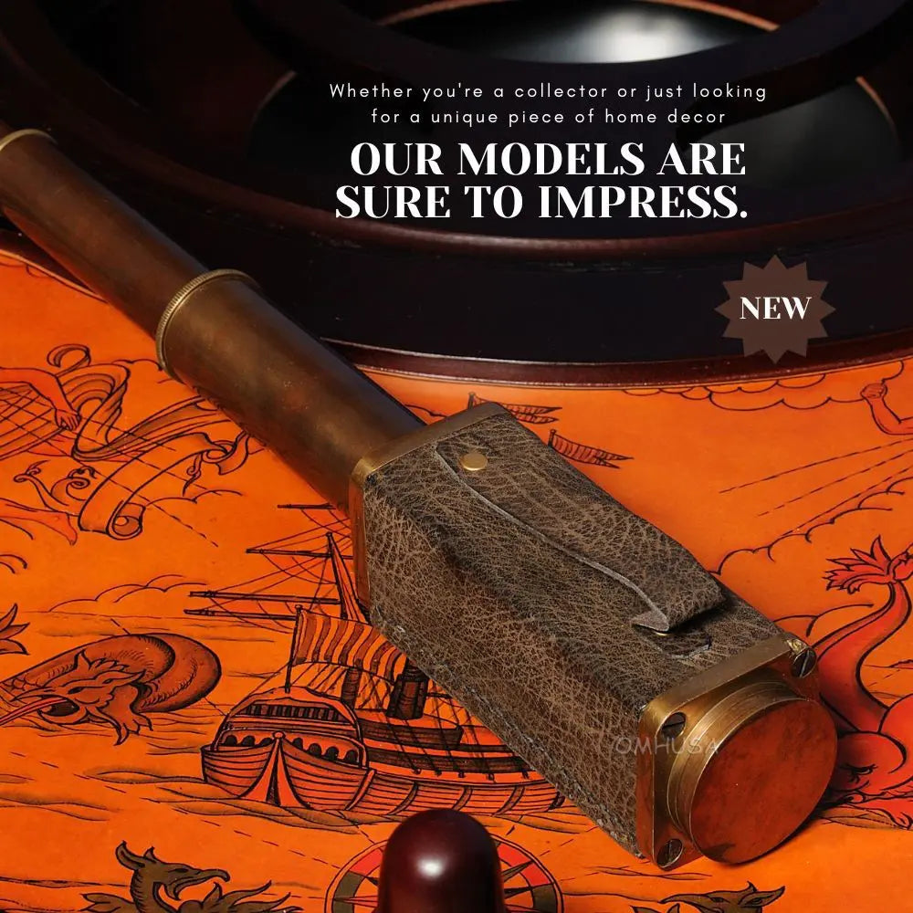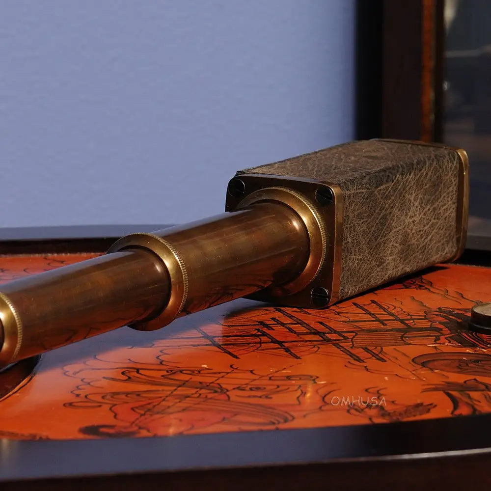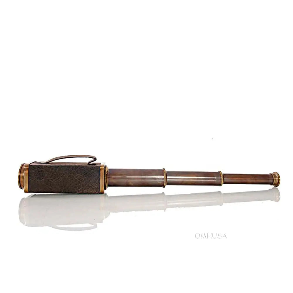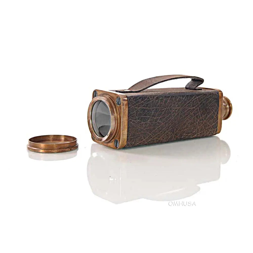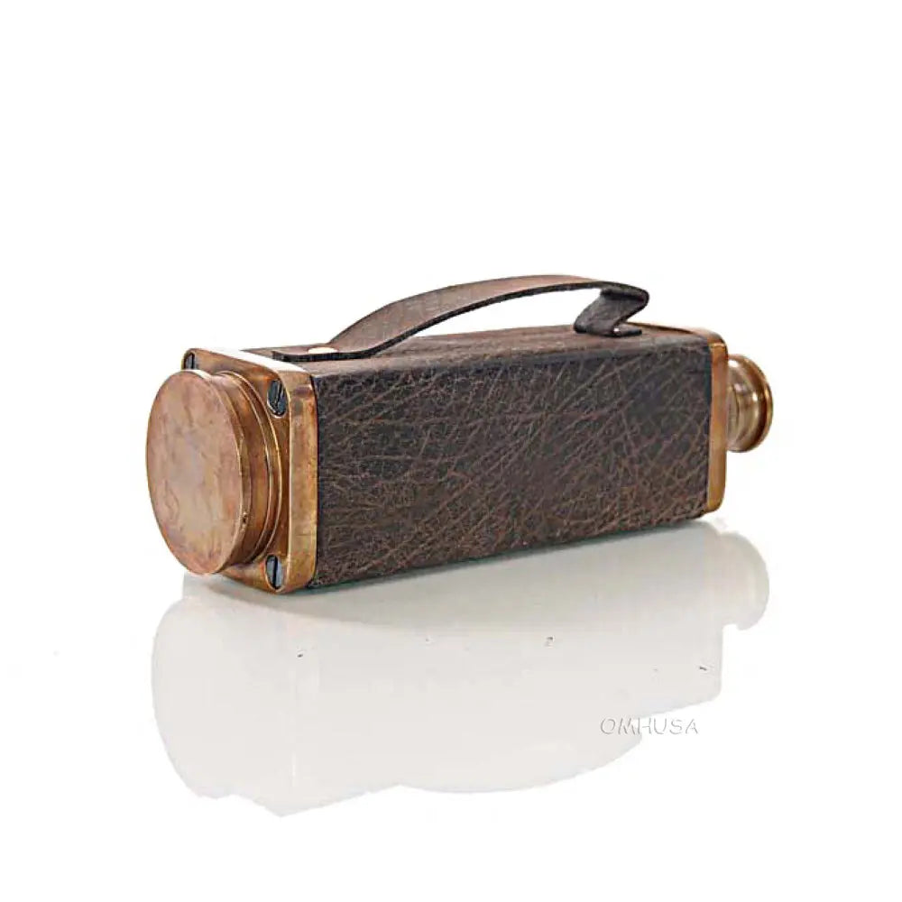 This square handheld telescope is crafted from high-quality brass and features an antique leather overlay for a rugged, nautical look. Measuring 17.25 inches extended, 1.75 inches wide, and 2 inches high, it delivers a magnifying power of approximately 6x, ideal for casual viewing or display. The telescope combines precise craftsmanship with functional design, making it both a collectible and a usable instrument. Perfect for nautical decor, maritime collections, or as a gift for enthusiasts, this telescope adds charm and authenticity to any space. Lightweight and portable, it can be easily handled for both decorative and practical purposes.
