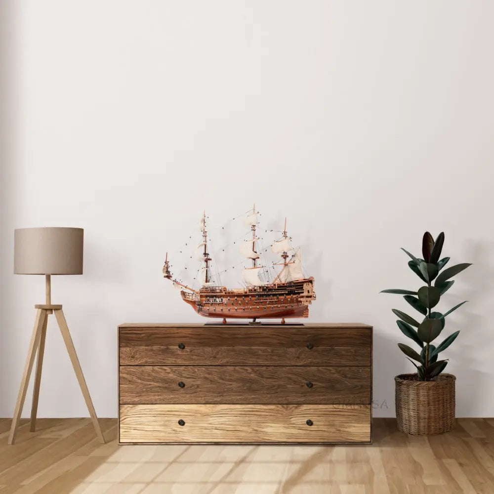 - Fully assembled St. Espirit tall ship model from Admiral Line