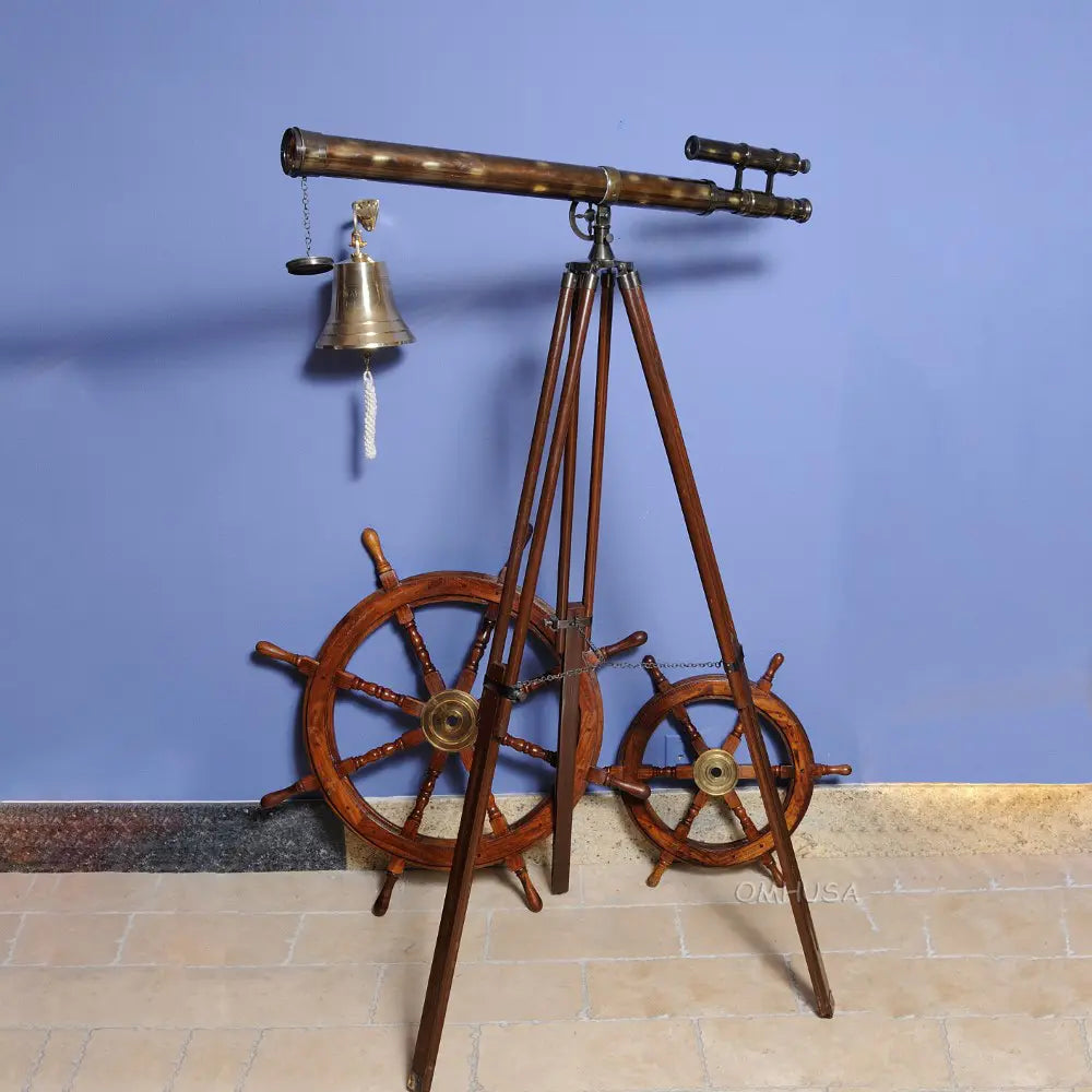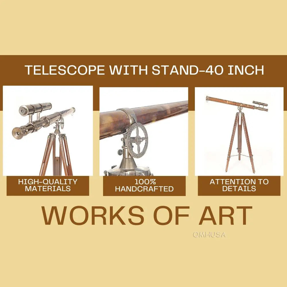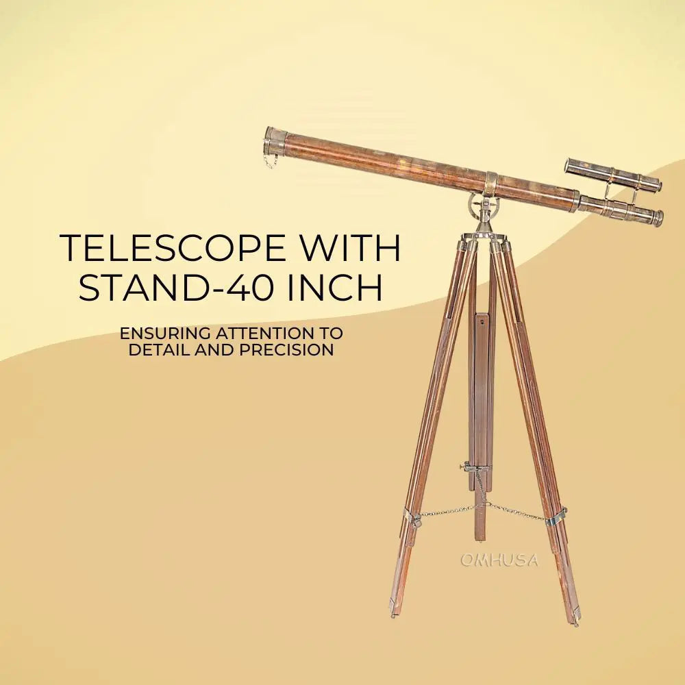 SKU - OMHND019Telescope With Stand – Brass And Ebony Finish – 40 Inch Adjustable Tripod