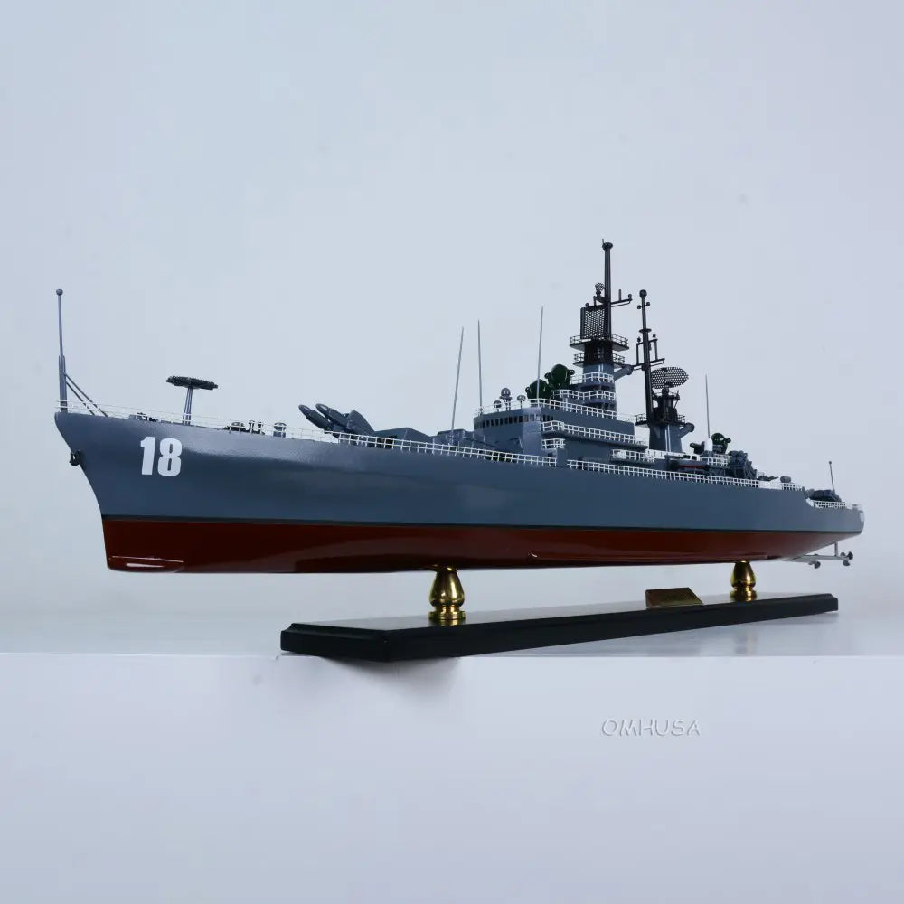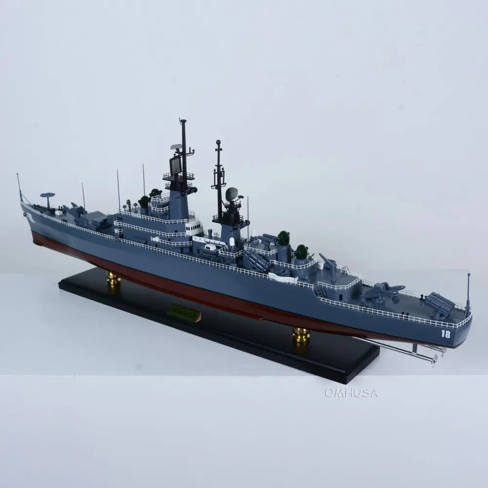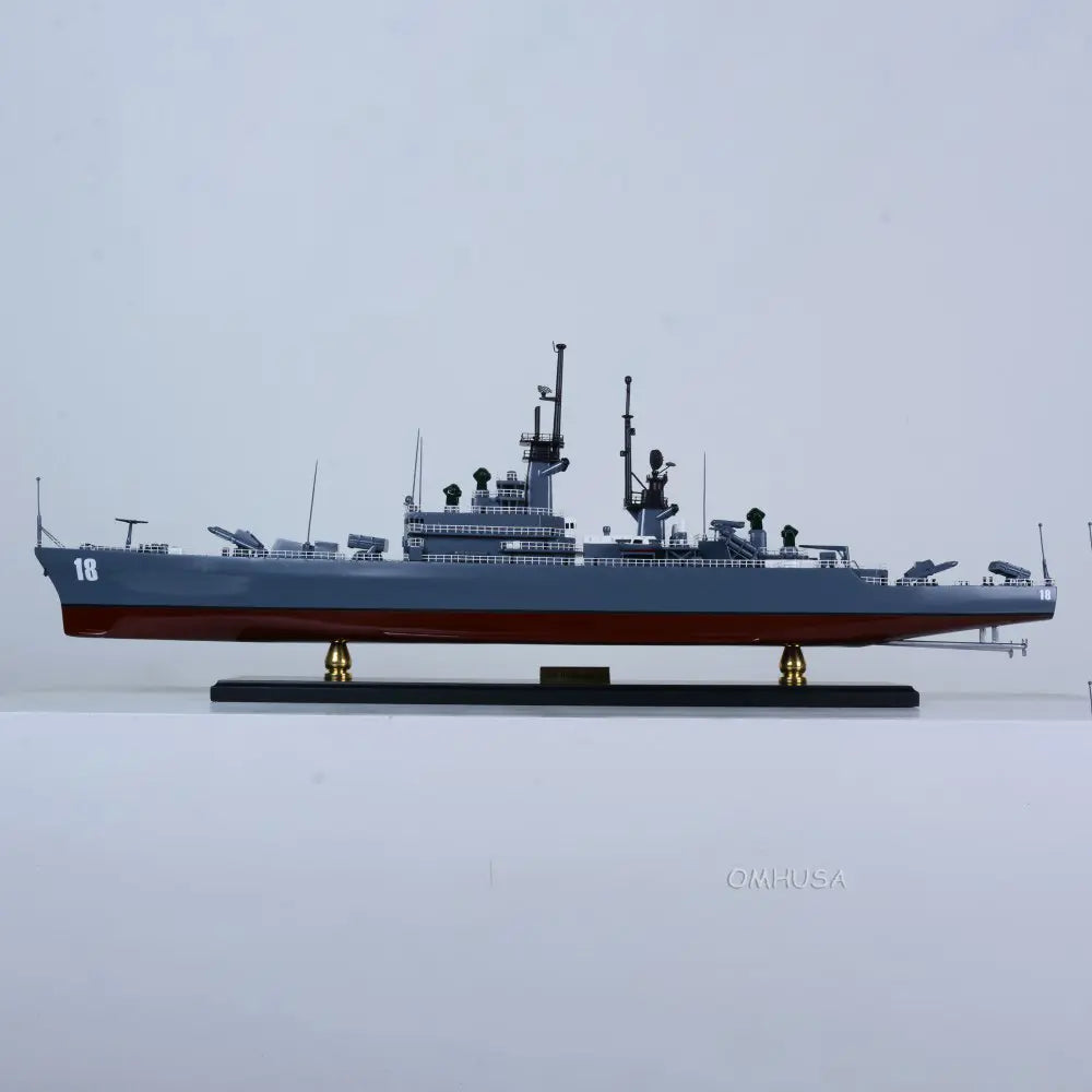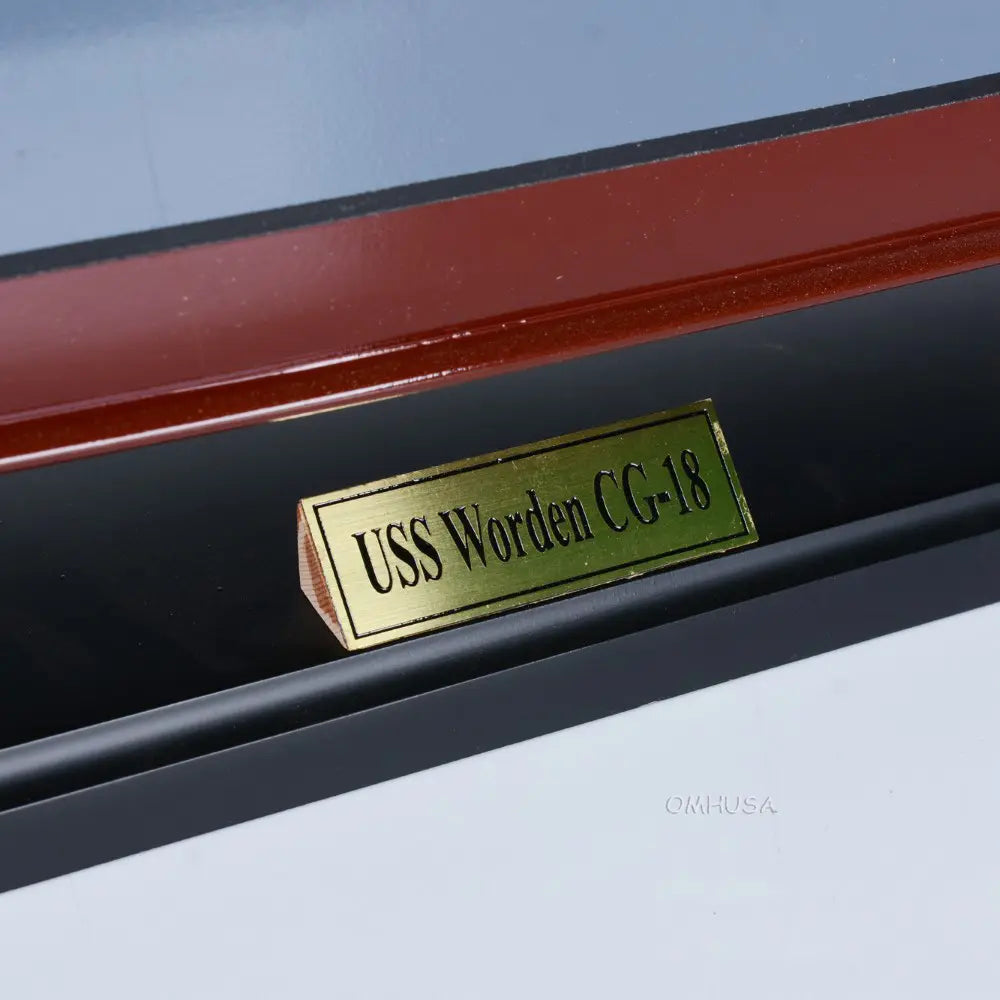 The USS Worden CG-18 Model Ship is a handcrafted wooden replica of the renowned Leahy-class guided missile cruiser. Built by master craftsmen using western red cedar, rosewood, and mahogany, this 13-inch scale model reflects remarkable detail and historical accuracy. Each piece is constructed using the plank-on-frame method and undergoes strict quality inspection. Featuring radar systems, deck guns, and lifeboats, this model rests on a solid wood base with a brass nameplate. Perfect for collectors, naval enthusiasts, or as a distinguished office or home display, the USS Worden CG-18 model honors the legacy of American naval excellence.