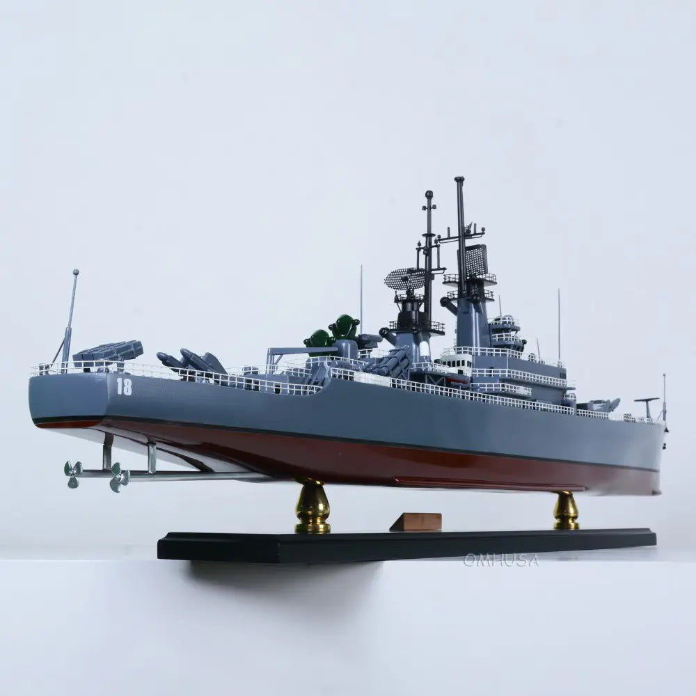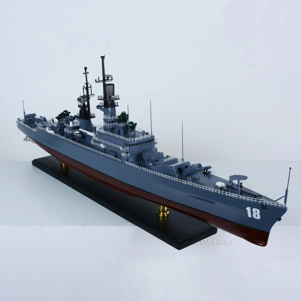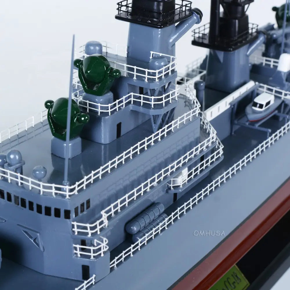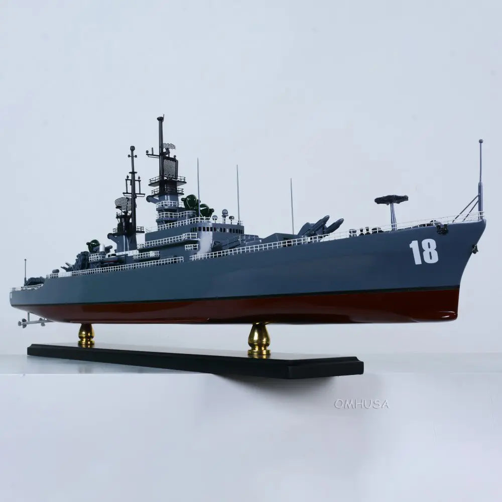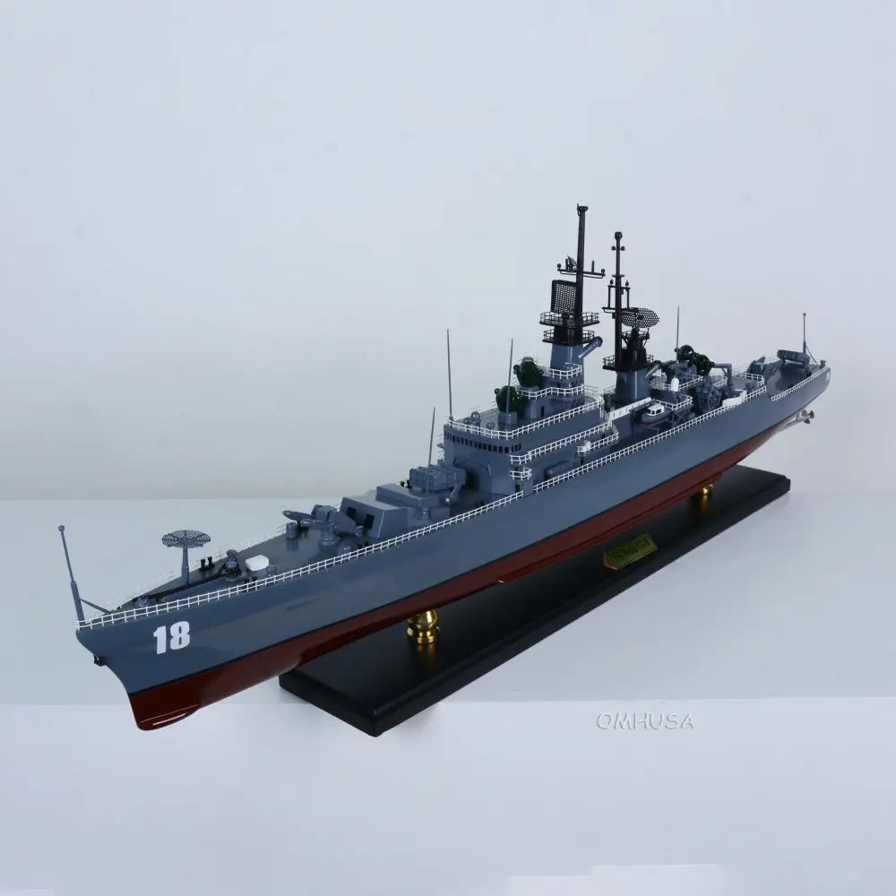 The USS Worden CG-18 Model Ship is a handcrafted wooden replica of the renowned Leahy-class guided missile cruiser. Built by master craftsmen using western red cedar, rosewood, and mahogany, this 13-inch scale model reflects remarkable detail and historical accuracy. Each piece is constructed using the plank-on-frame method and undergoes strict quality inspection. Featuring radar systems, deck guns, and lifeboats, this model rests on a solid wood base with a brass nameplate. Perfect for collectors, naval enthusiasts, or as a distinguished office or home display, the USS Worden CG-18 model honors the legacy of American naval excellence.