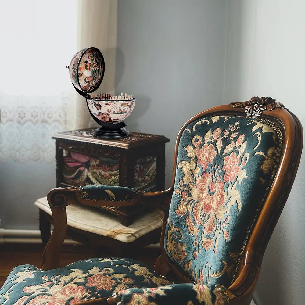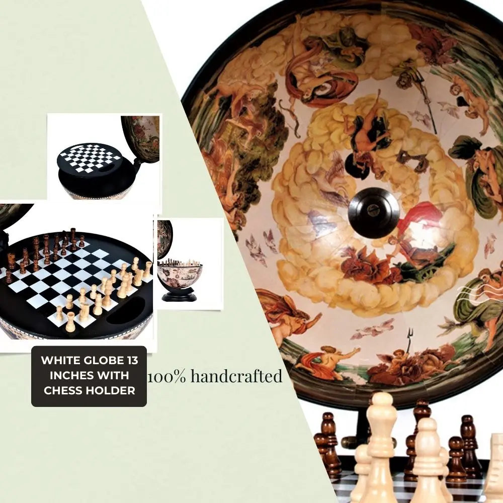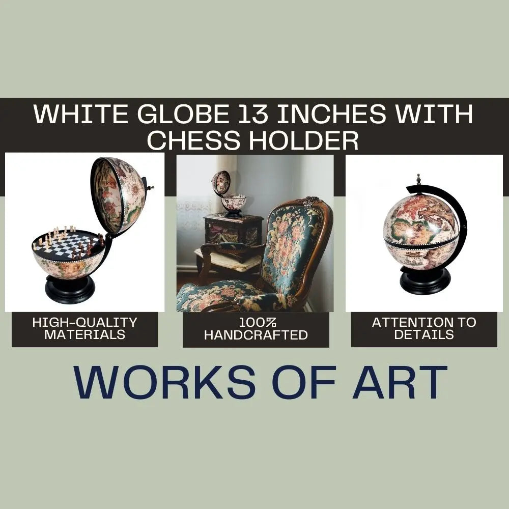 White Globe – 20" Height with Chess Holder – 13" Diameter Antique Design By Old Modern Handicrafts