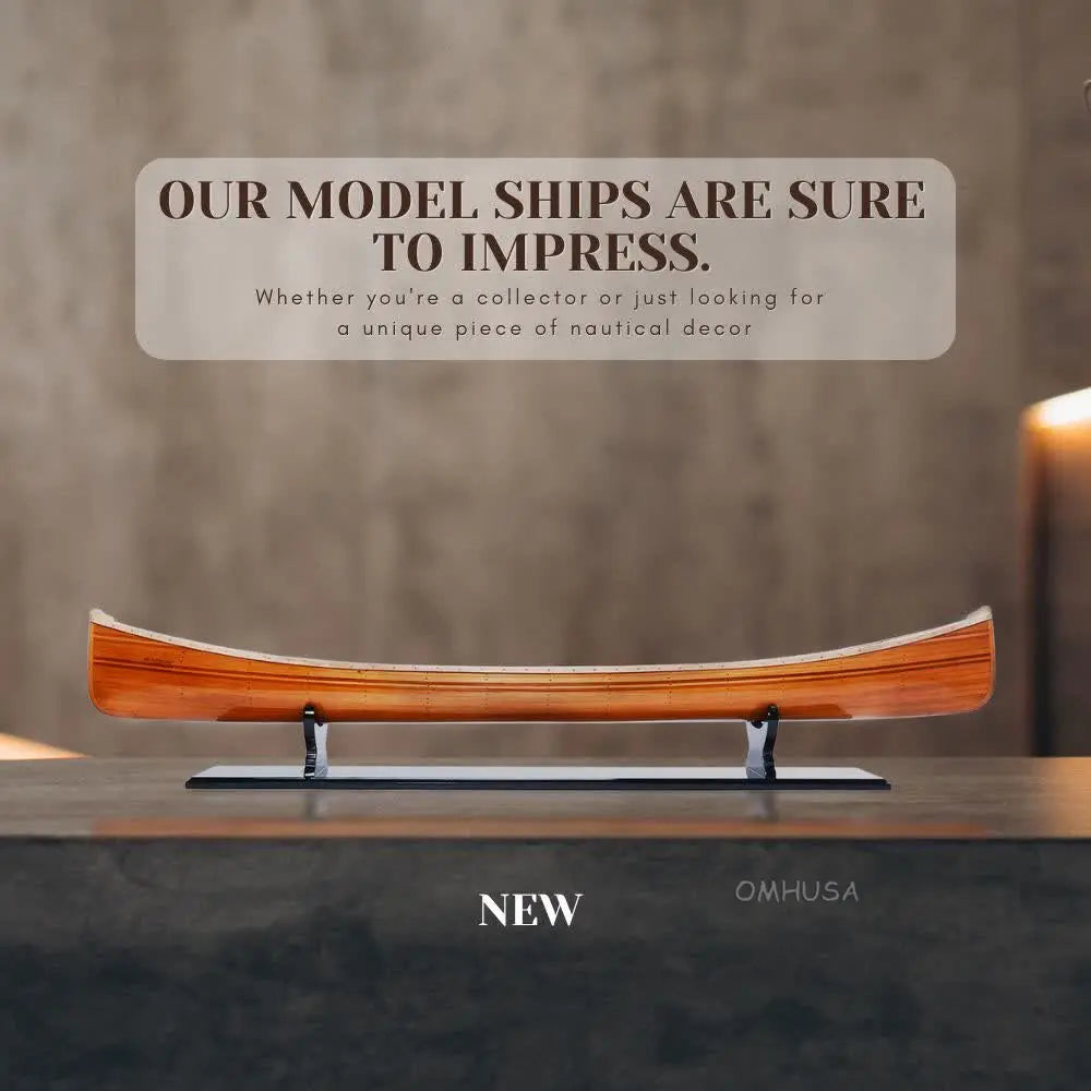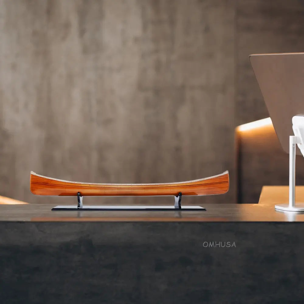Celebrate the art of traditional boat making with the Wooden Canoe Boat Model, a 5.5-inch handcrafted cedar masterpiece. Built using age-old techniques, each miniature canoe showcases the warmth and beauty of natural wood, complete with two detailed rattan seats for authentic appeal. Every strip of cedar is hand-joined by skilled craftsmen, capturing the sleek lines and spirit of a real canoe. Designed for display, this model brings a touch of rustic charm to homes, offices, or collections. Perfect for canoeing enthusiasts and admirers of fine woodworking, it represents timeless craftsmanship and enduring elegance.