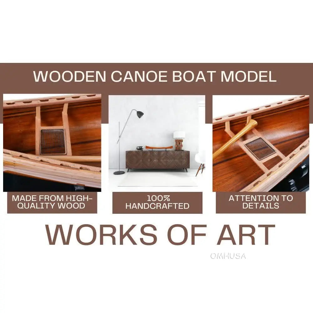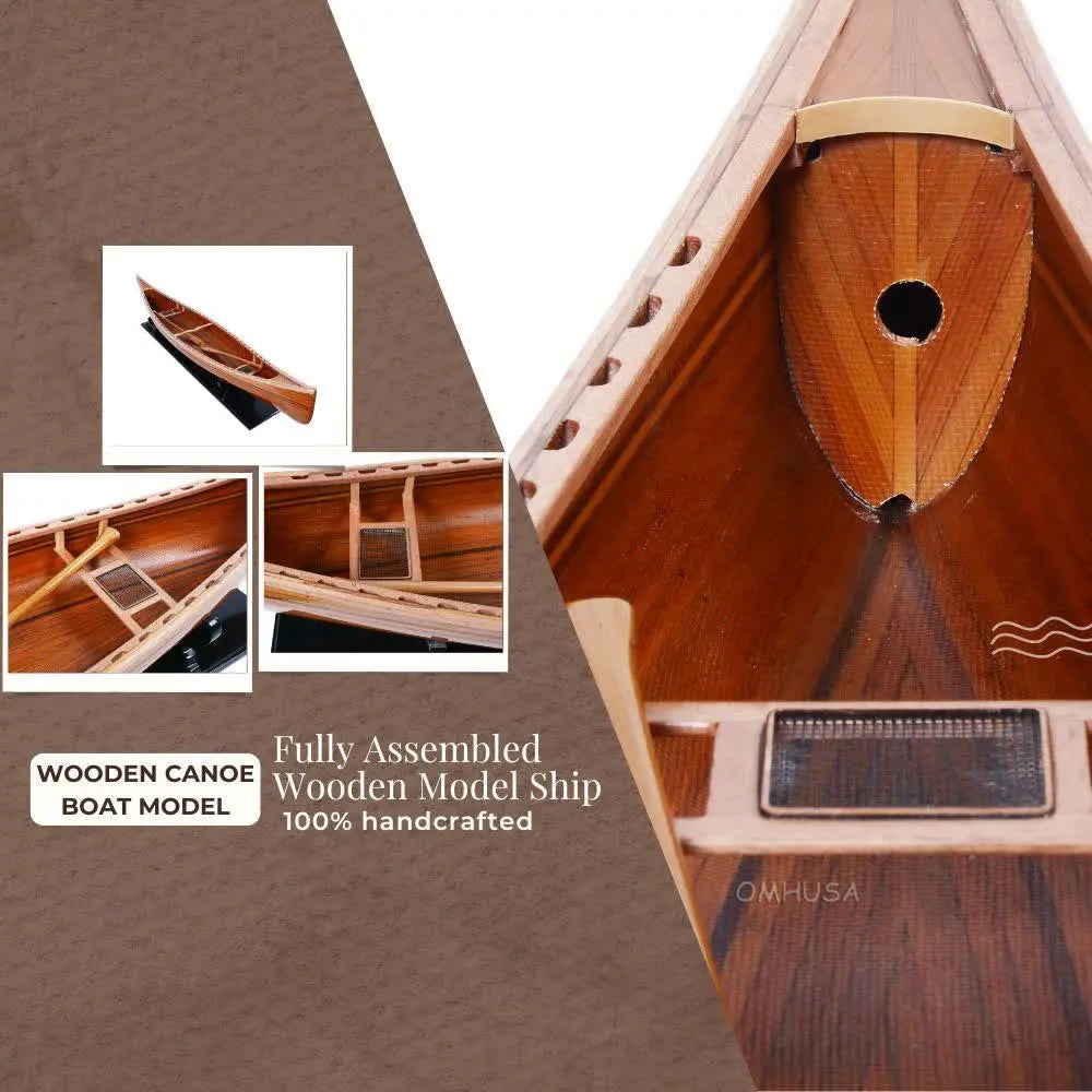 Wooden Canoe Boat Model 5.5" H – Handcrafted Cedar Wood Display By Old Modern Handicrafts