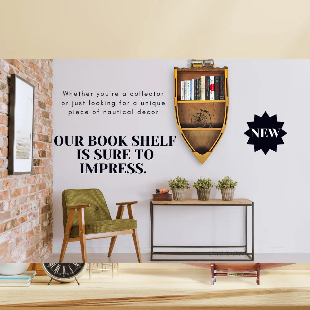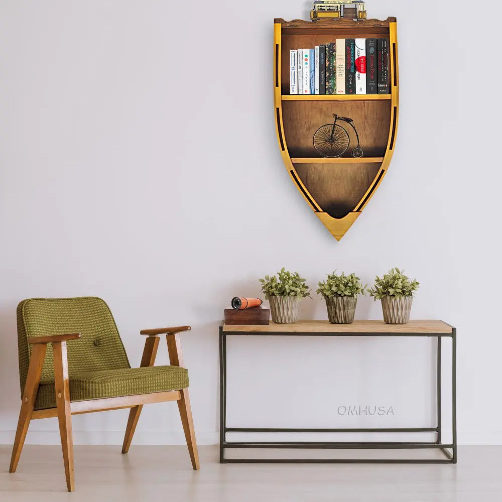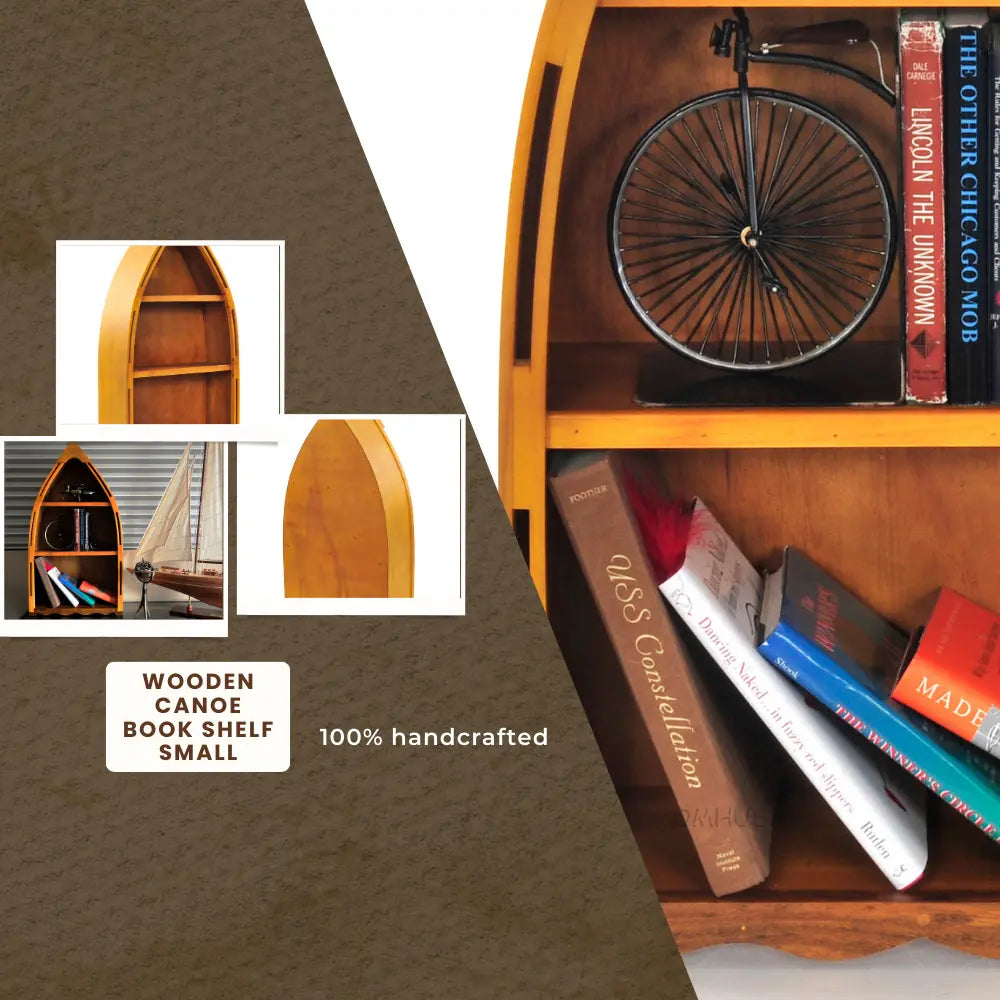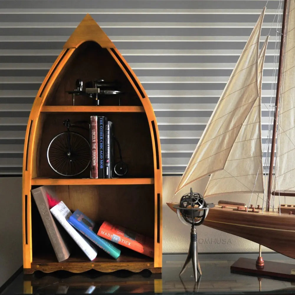 Wooden Canoe Book Shelf – 34.3H Nautical Storage – Small Handcrafted Design By old Modern Handicrafts