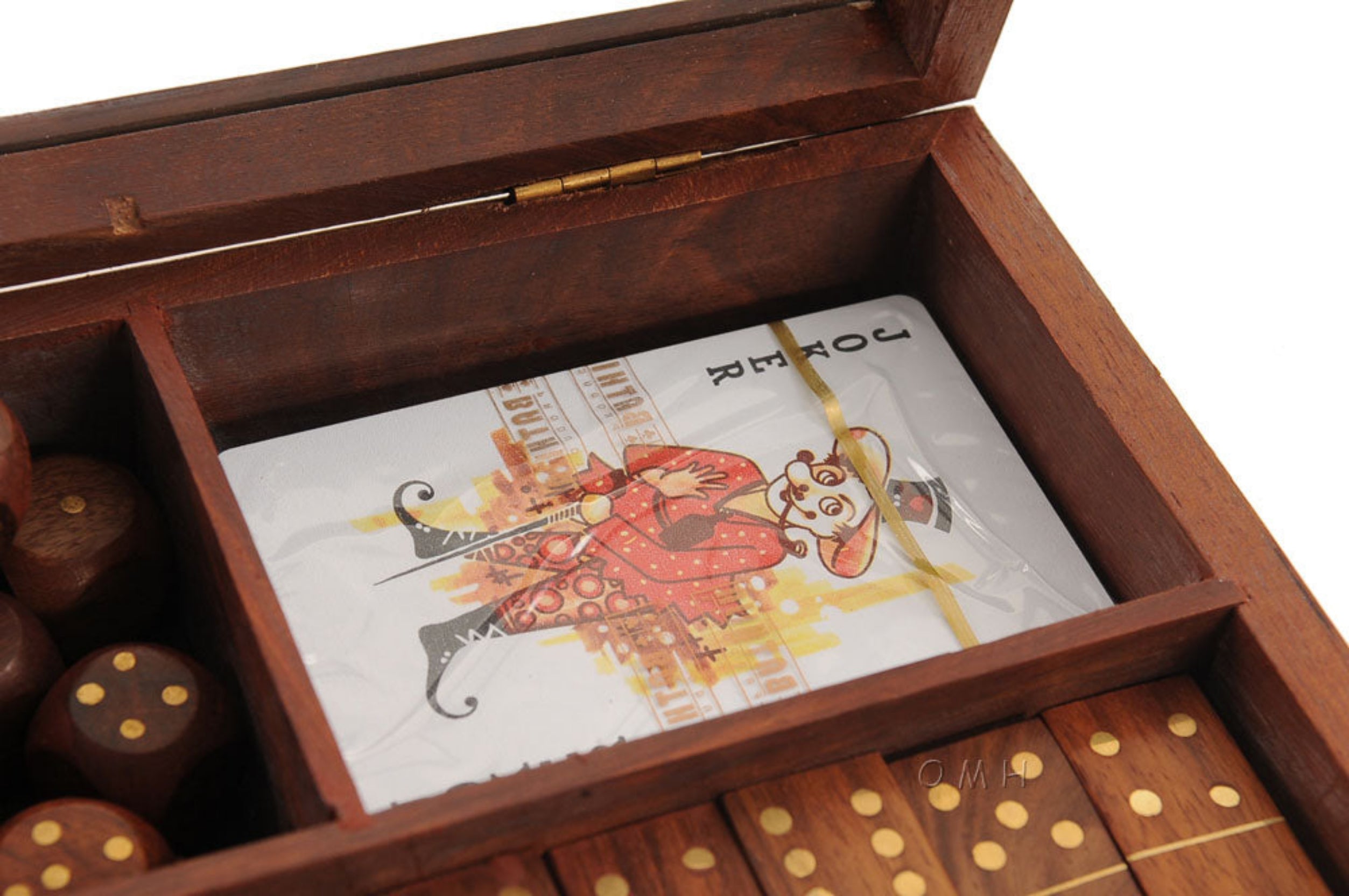 Wooden Game Set – Dice, Domino & Cards – 2.5" Height Family Entertainment