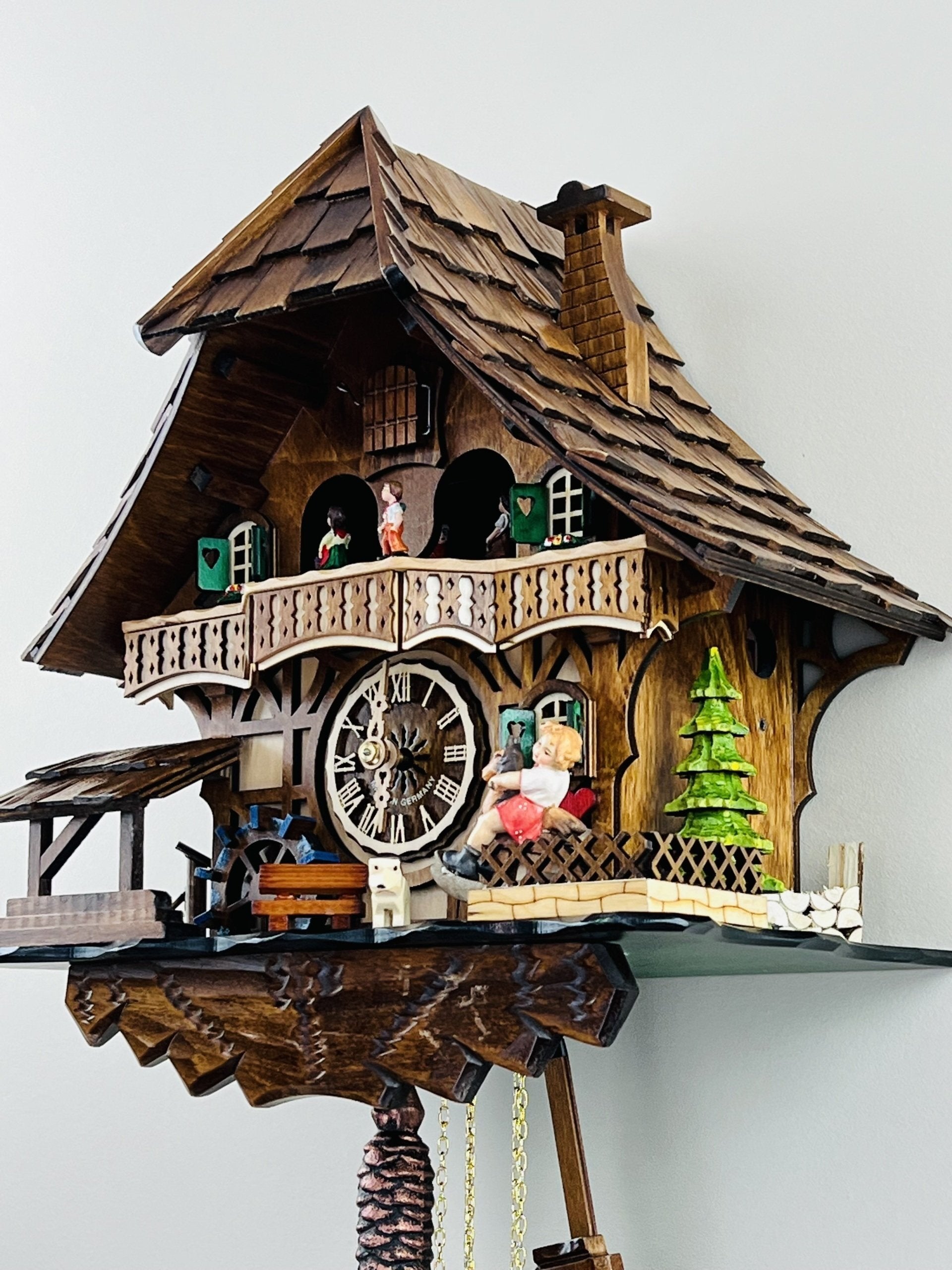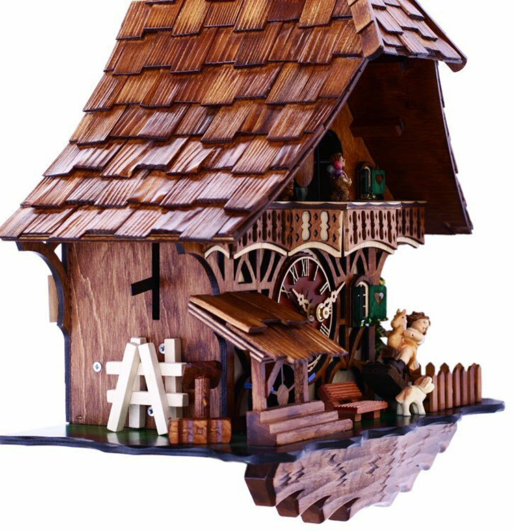 Musical Chalet Cuckoo Clock with Waterwheel & Animated Figures – 13"