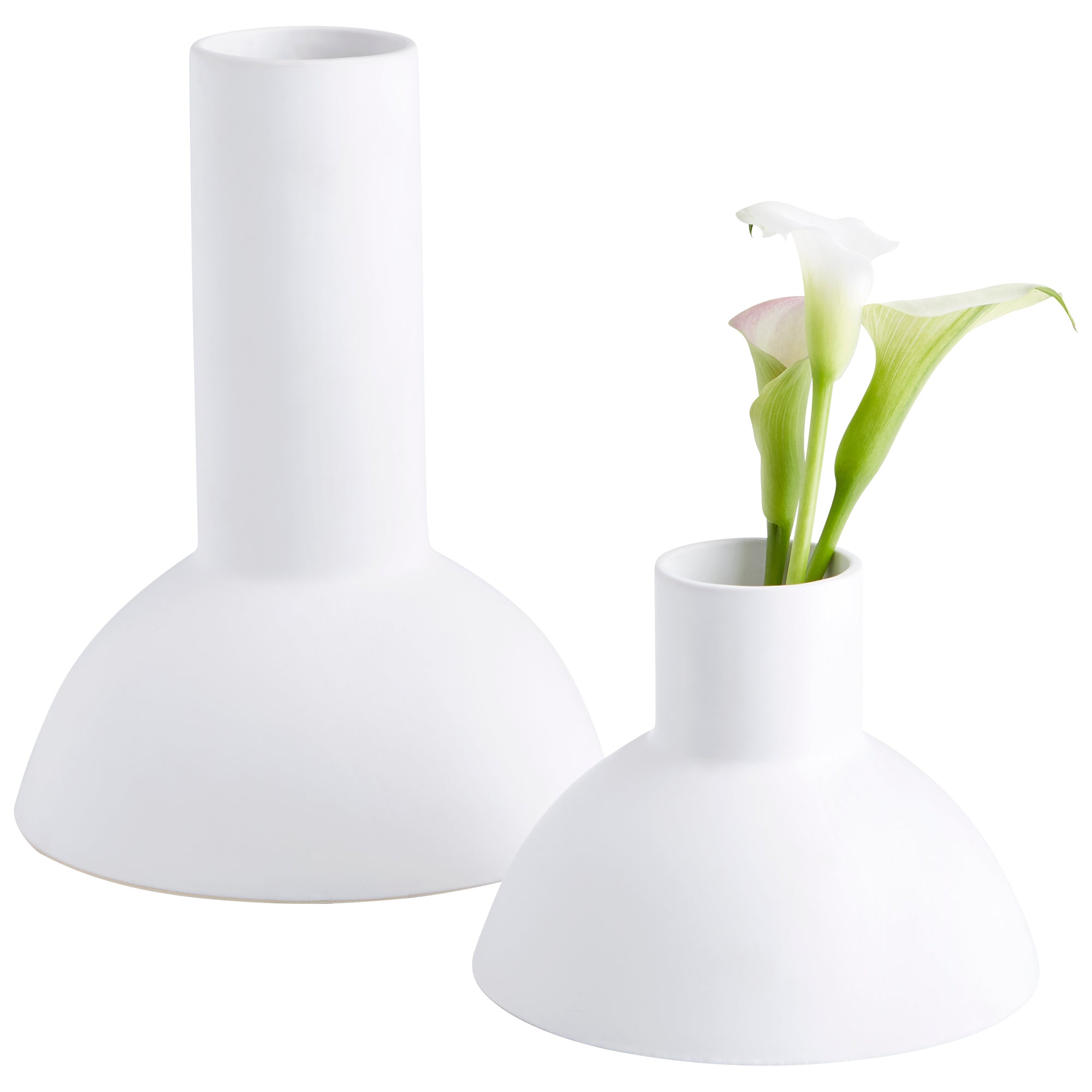 The Purezza vase is crafted from a ceramic material with a classic tulip silhouette. A clean and neutral vessel that lends decorative appeal to any tabletop display will fit beautifully into any style decor. Highlight a single beautiful bloom or display unadorned for an equally stunning effect. The subdued matte white finish is the perfect complement to any living room, entryway, or kitchen design