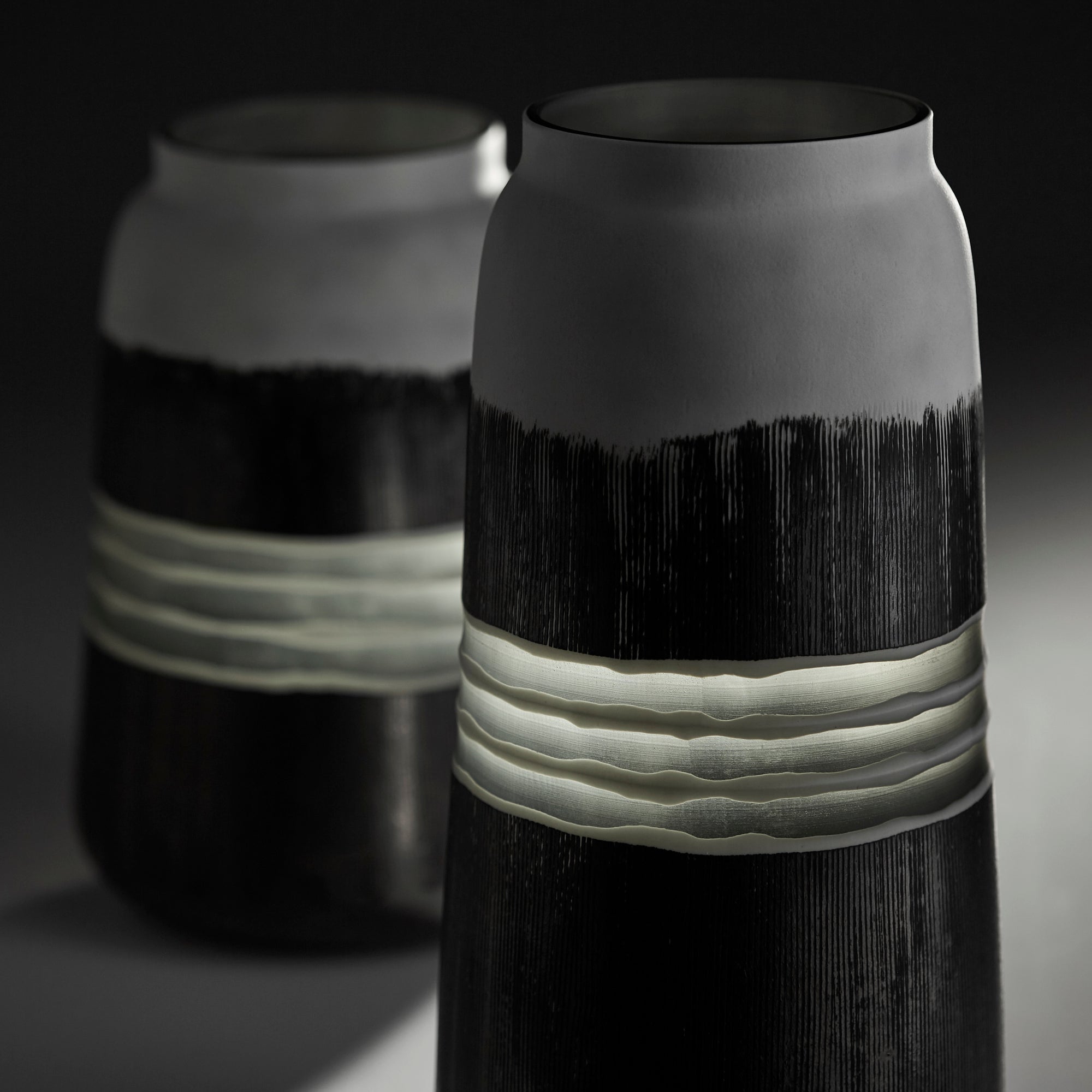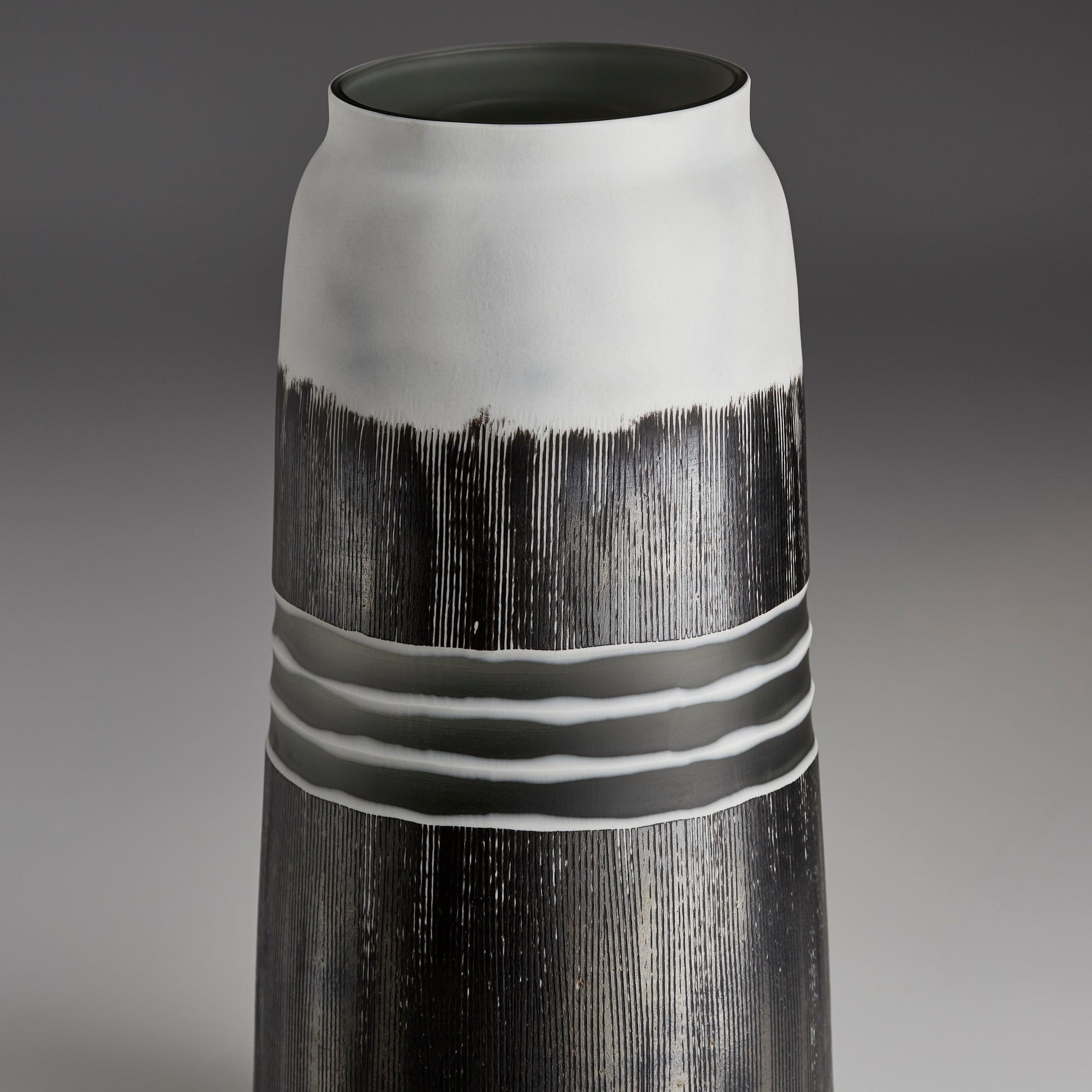 Made from high-quality hand-blown glass in a two-toned, black and white finish, the Bomeo vase features a three-stripe design spanning horizontally across the surface. Textured brushstrokes liberally cover the majority of this accent piece, adding some artistic elegance to the vessel. A beautiful addition to any decor theme, this vase will surely fill your home with whimsical style and panache. The perfect balance of design, the Bomeo vase is the ideal accessory to anchor a room of any style
