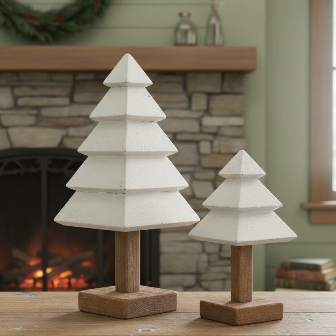 Bring natural charm to your holiday décor with this set of two wooden tabletop trees. Crafted from durable pine wood in a warm white and brown finish, each tree features a clean, minimalist silhouette that suits rustic, farmhouse, and modern holiday themes alike. The set includes two complementary sizes—15 inches and 21 inches—allowing for a layered, eye-catching display on mantels, consoles, shelves, or tabletop arrangements. Lightweight yet sturdy, these decorative trees add seasonal warmth without overwhelming your space. Their timeless look makes them perfect for Christmas decorating, winter styling, or year-round woodland-inspired décor. A versatile and elegant addition to your holiday home.