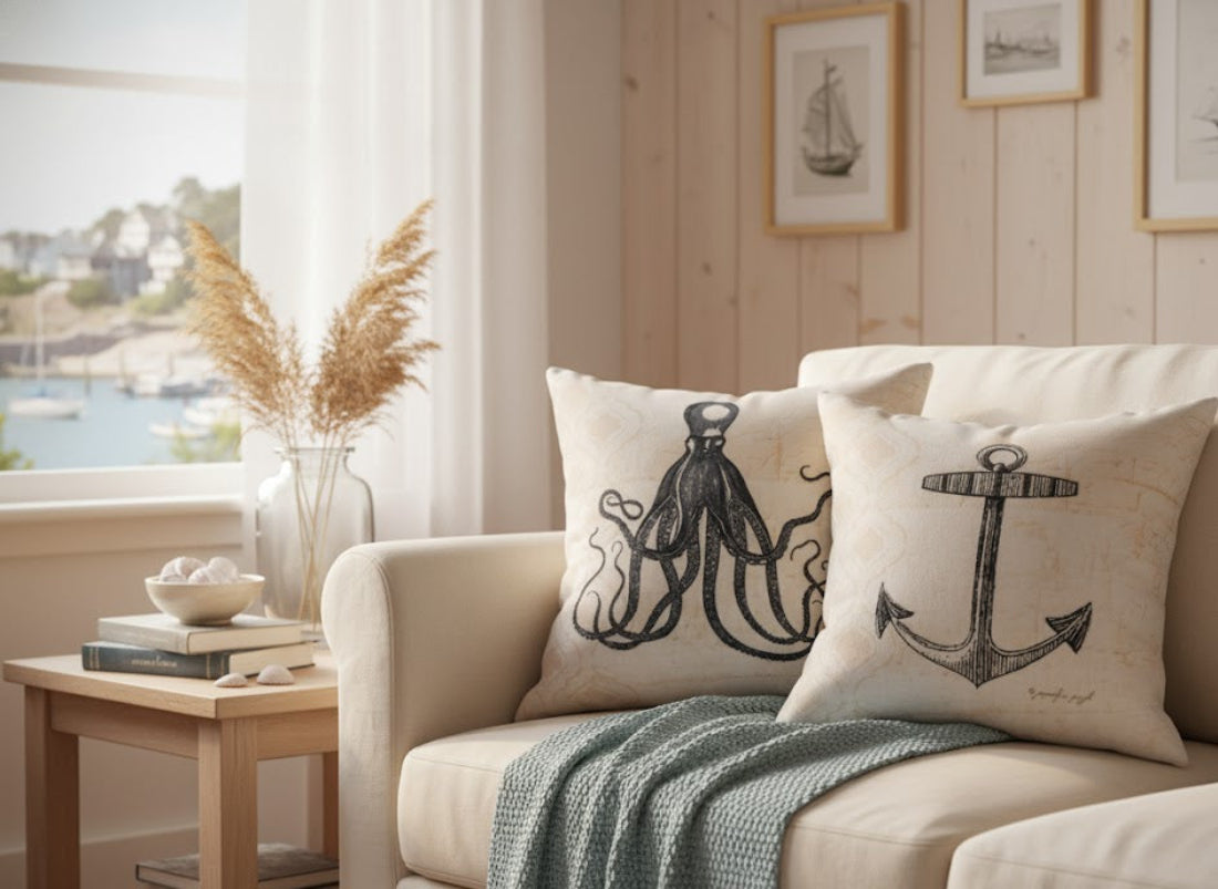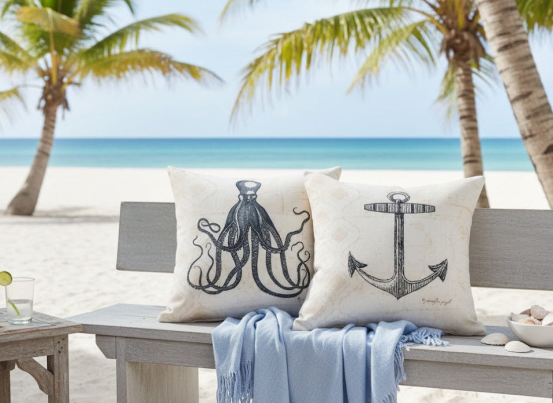 12 Inch Pillow Nautical Wonder Design – Beach Home Accent by Manual Woodworkers