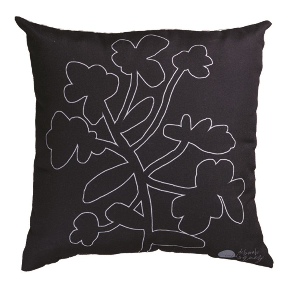 18 Inch Black and White Floral Print Polyester Pillow by Manual Woodworkers