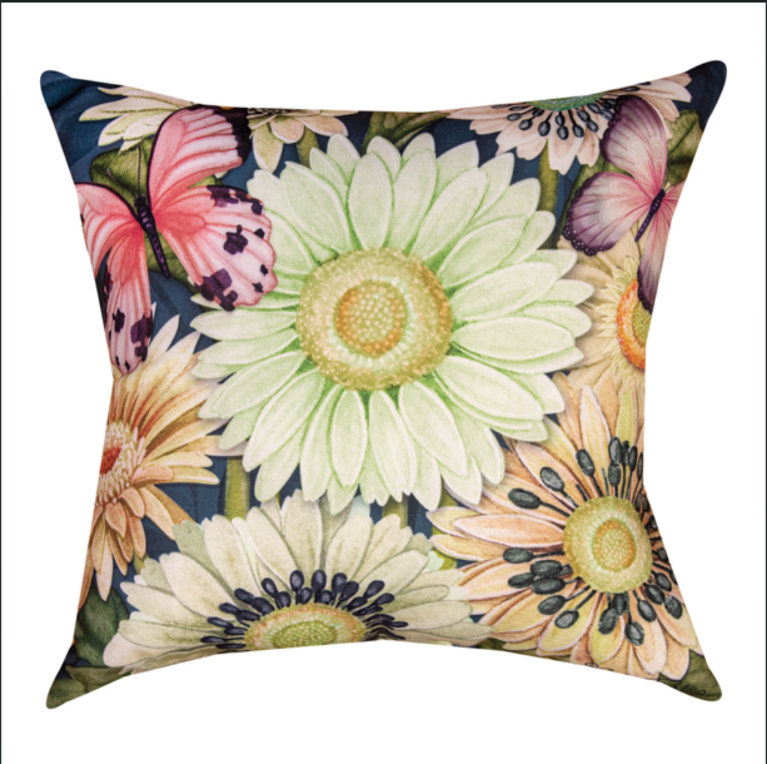 - 18 inch decorative pillow featuring a pink butterfly motif