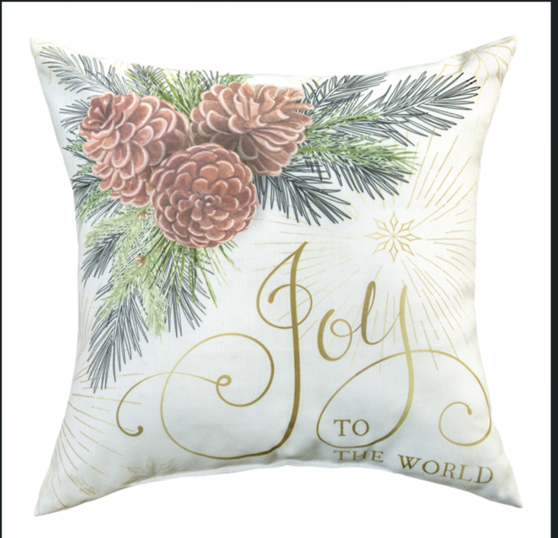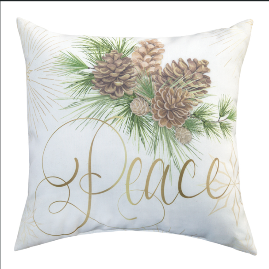 - Features winter pine print with holiday “Peace” and “Joy” text