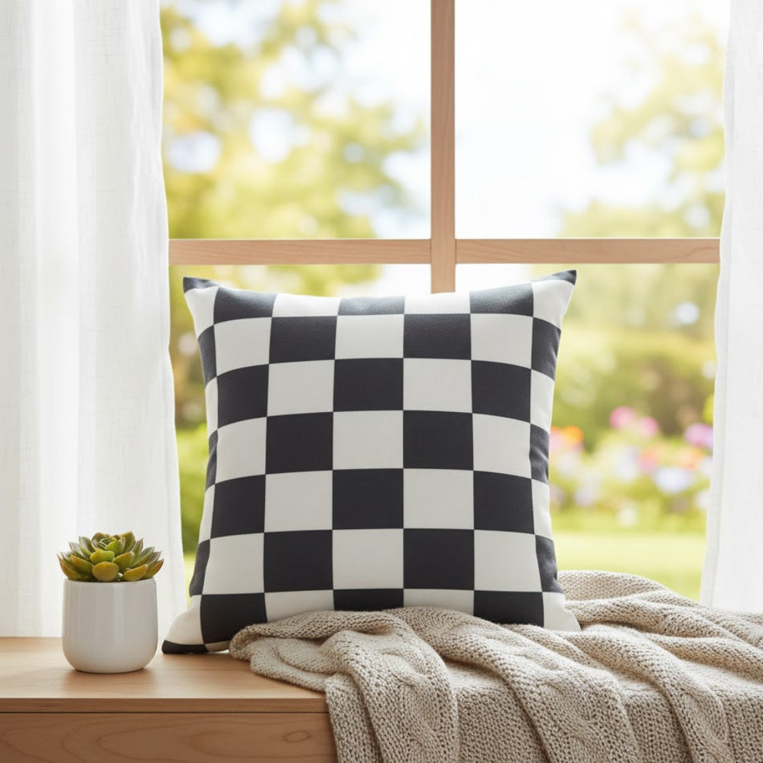 Add a modern touch to any space with the Checkerboard Black 18x18 Climaweave Pillow. Featuring a bold black and white checkerboard pattern, this stylish pillow is crafted from 100% polyester and designed with Climaweave technology for enhanced durability and fade resistance. Ideal for living rooms, bedrooms, or office spaces, it seamlessly complements contemporary and minimalist décor styles. The soft, weather-resistant fabric offers long-lasting comfort, whether indoors or outdoors. With its clean lines and striking contrast, this pillow is perfect for adding a pop of pattern to any modern interior while providing plush support and easy maintenance.