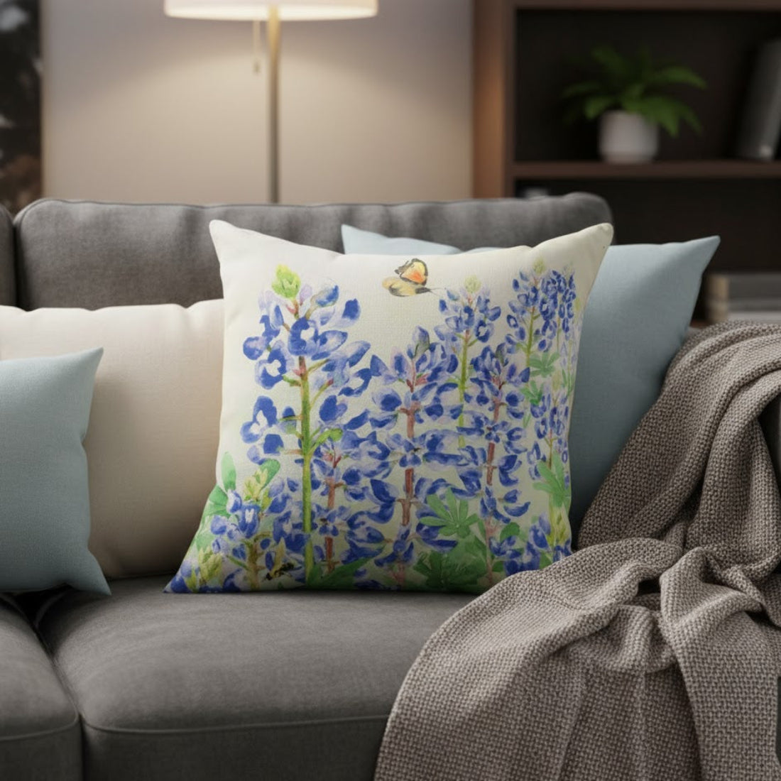 18x18 Inch Bluebonnets in Bloom Polyester Decorative Pillow by Manual Woodworkers