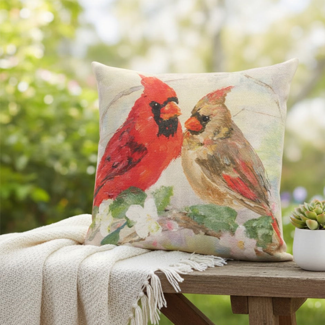 Bring the beauty of nature indoors with the Cardinals in Flowers 18 Inch Climaweave Pillow by Manual Woodworkers. This vibrant design features bright red cardinals surrounded by blooming flowers, offering a cheerful accent to any room or outdoor space. Crafted from 100% polyester with Climaweave fabric technology, it’s both durable and fade-resistant, perfect for year-round use. The pillow’s weather-resistant material ensures it stays fresh and colorful, whether placed on a patio bench, sofa, or sunroom chair. Add a touch of nature’s serenity and color to your home décor with this artfully designed decorative pillow.