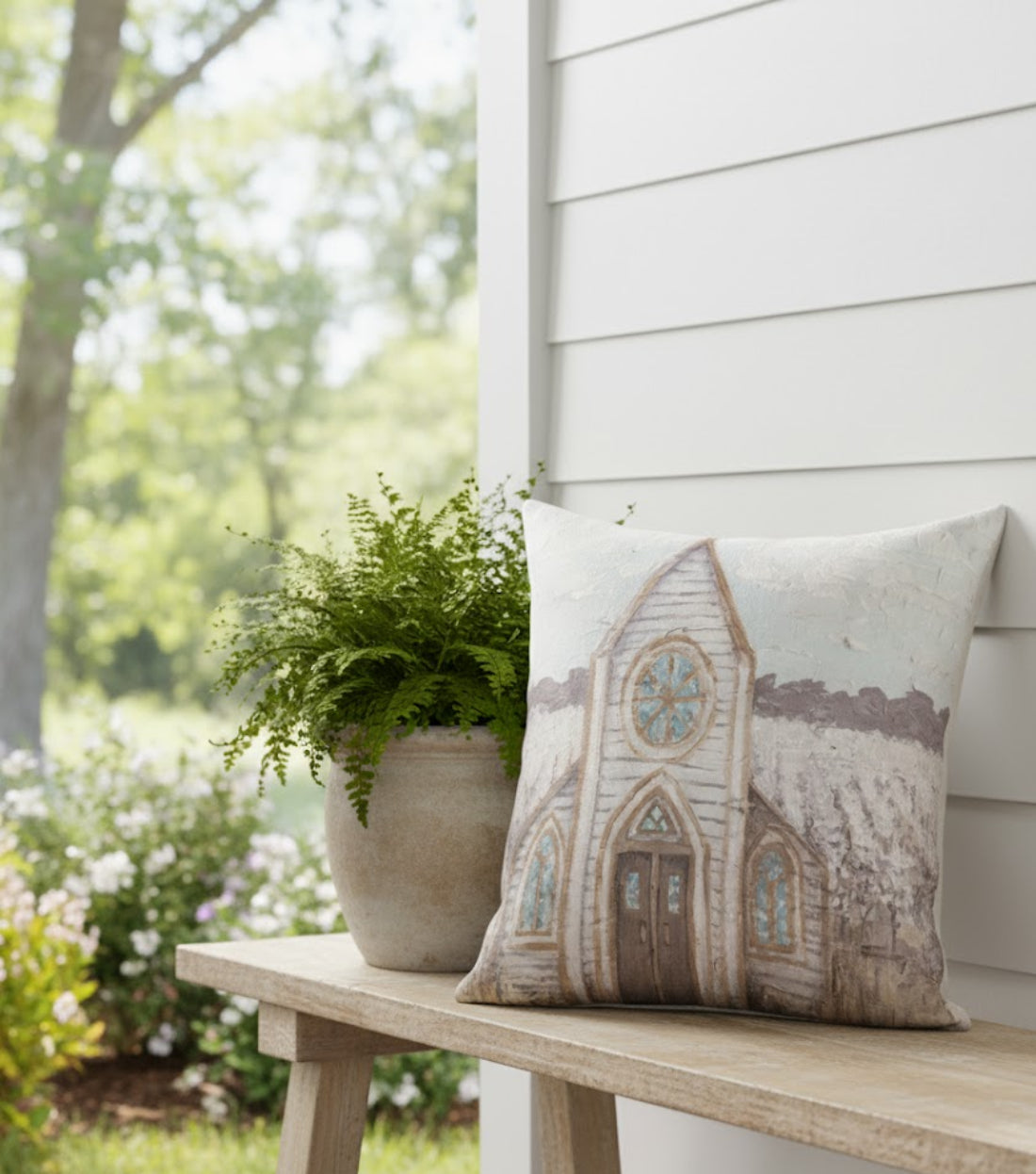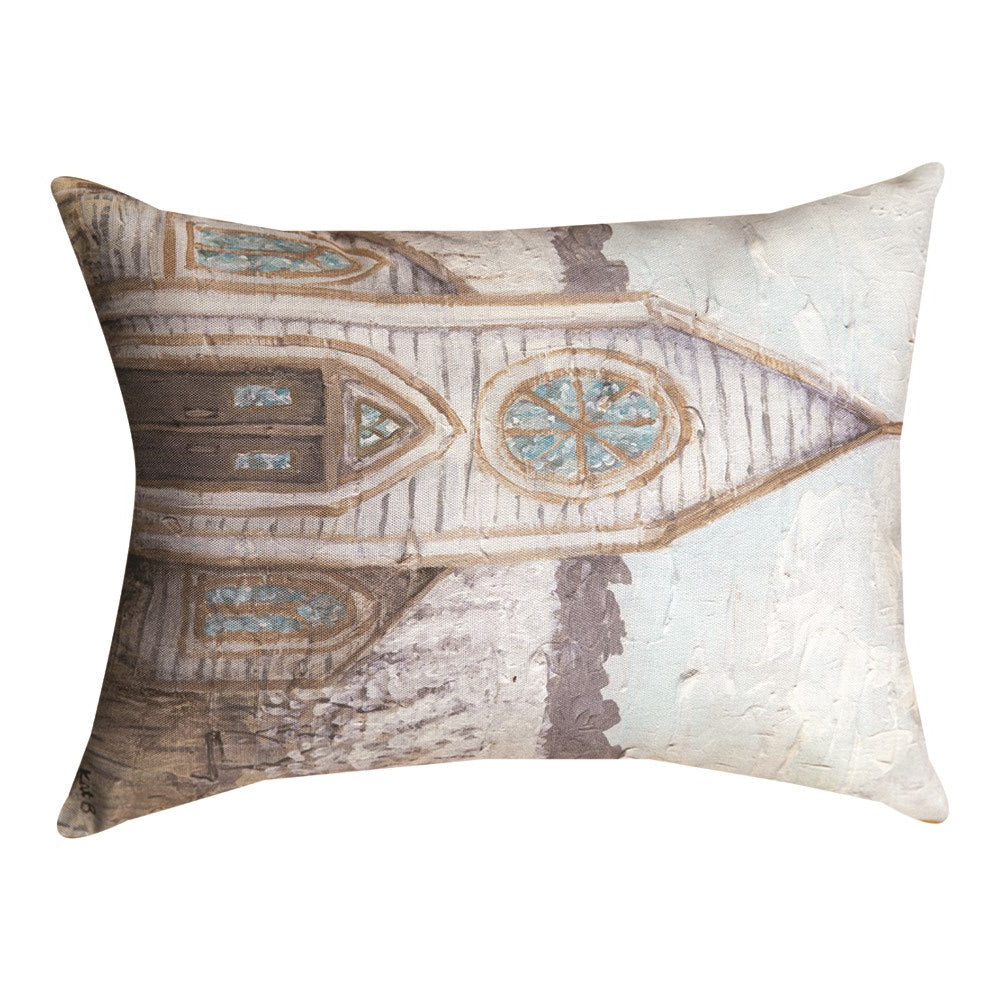 Farm Sketch Church Polyester Pillow – 13x18 inch Accent by Manual Woodworkers