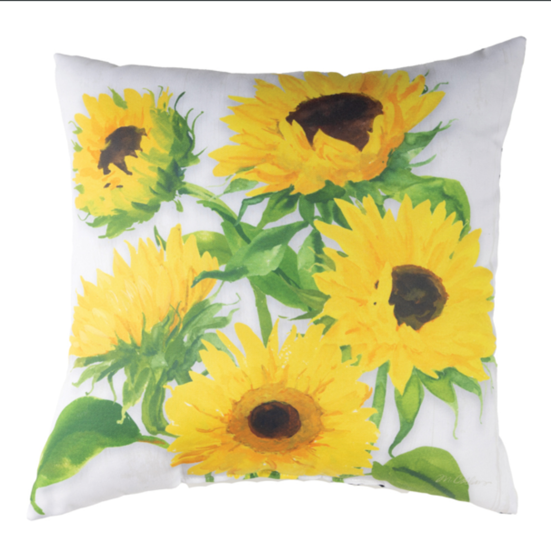 SKU - MWWSLZSWFloral Outdoor - 18" Pillow White Sunflowers with Graphic Zigzag by Manual Woodworkers