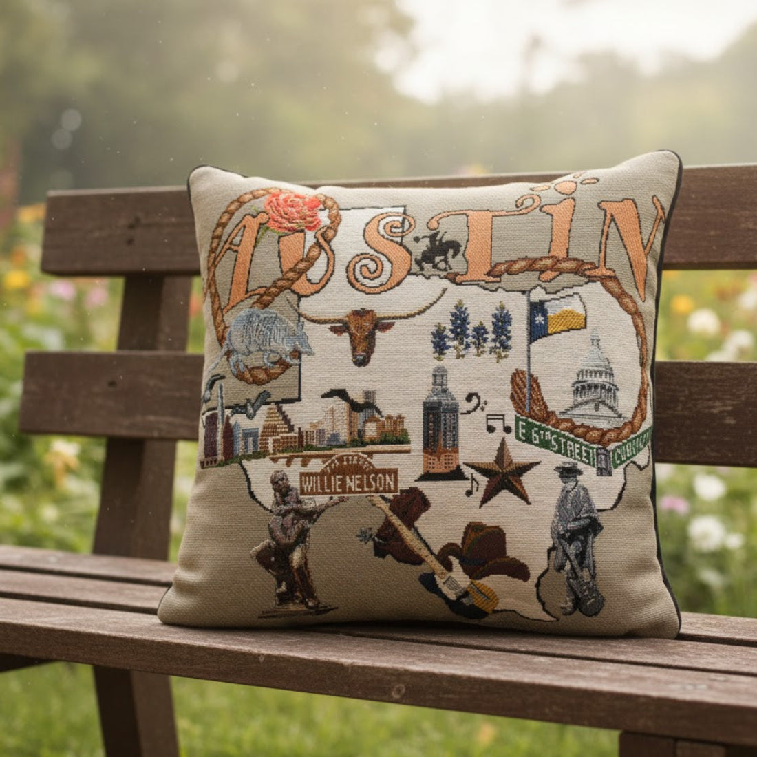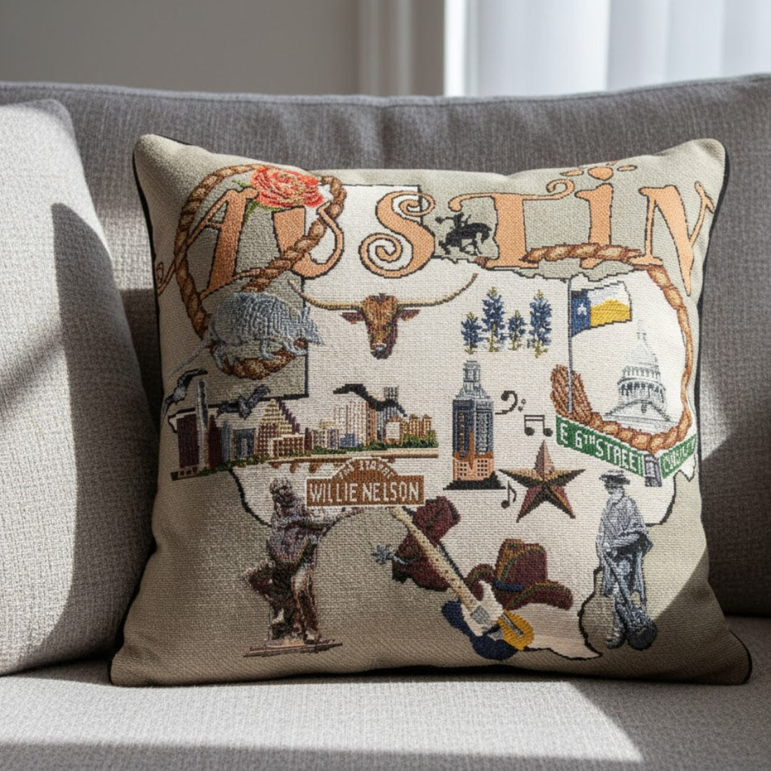 The Austin 2 17x17 inch pillow combines style and comfort for everyday use. Made from a 61% cotton and 39% polyester blend, it provides a soft yet durable surface, perfect for sofas, beds, or chairs. Featuring the Austin 2 design, this pillow adds a modern, artistic touch to any home decor, making it ideal for music enthusiasts or design-conscious spaces. Its lightweight construction allows for easy placement and repositioning, while the quality fabric ensures long-lasting color and texture. This pillow offers both functional support and decorative appeal, creating a cozy and visually engaging accent in living rooms, bedrooms, or music-themed spaces.