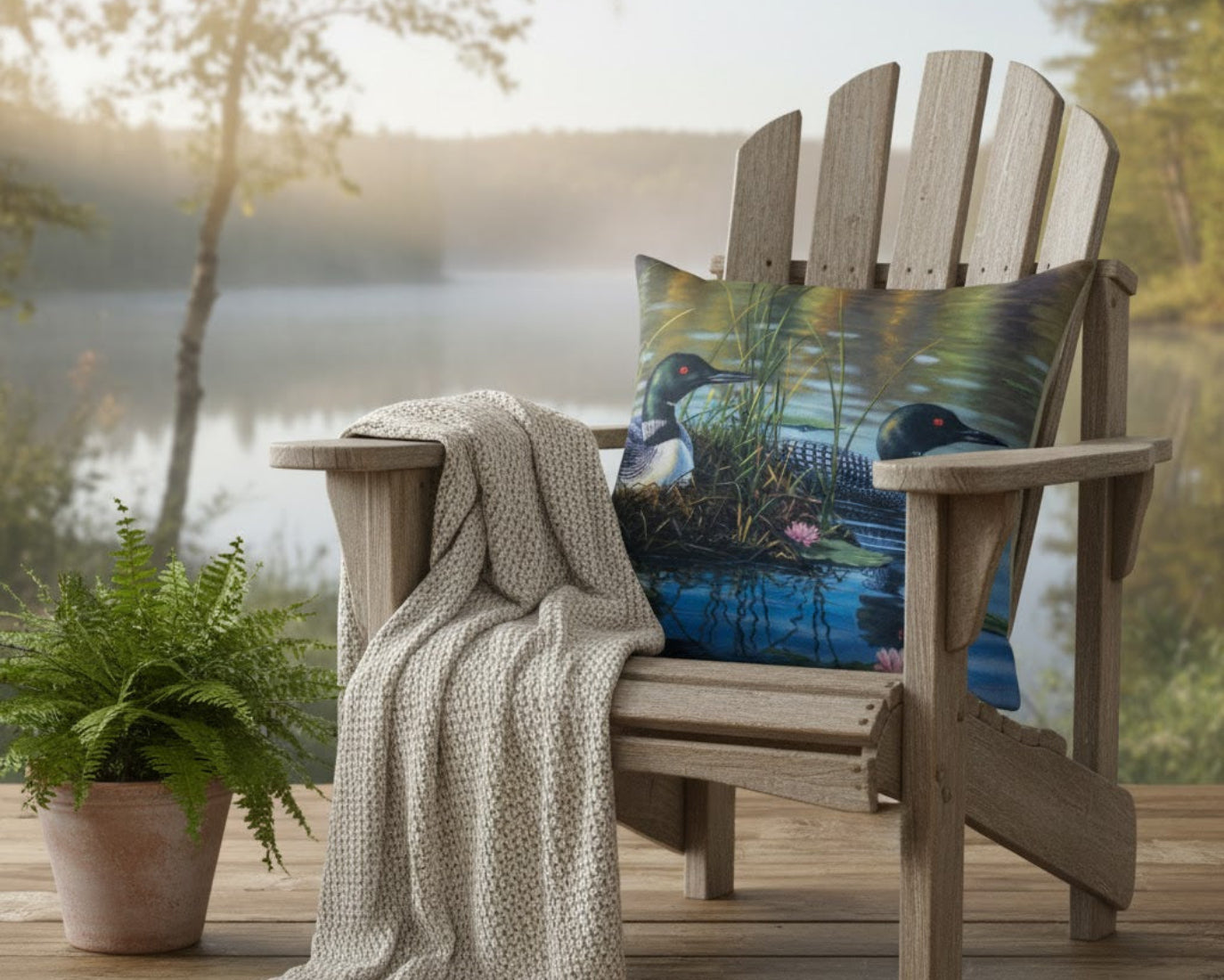 Loon Pair Climaweave Pillow – 18" Rustic Outdoor Accent by Manual Woodworkers