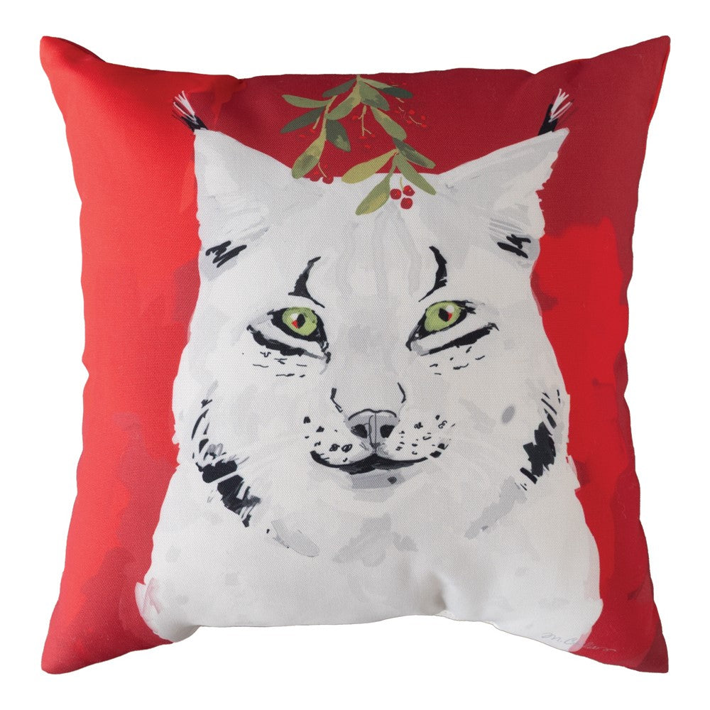 Polar Bear & Lynx Christmas Scene Pillow – Climaweave Polyester, 18"x18" by Manual Woodworkers