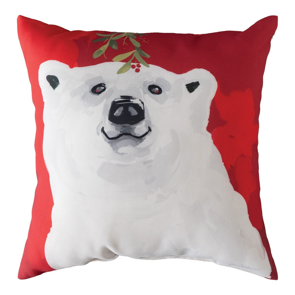 SKU - MWWSLWCBLPolar Bear & Lynx Christmas Scene Pillow – Climaweave Polyester, 18"x18" by Manual Woodworkers