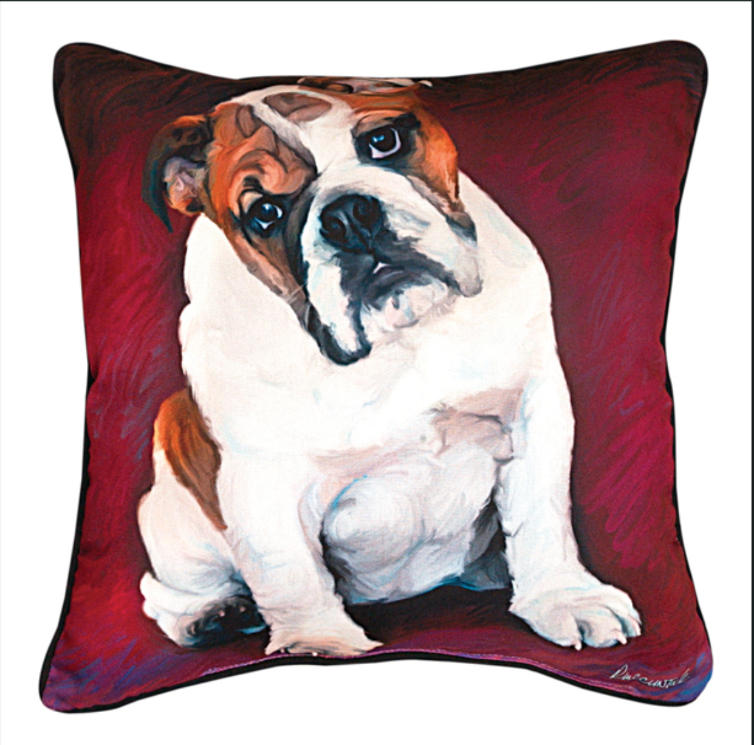 Puppy Print 18 Inch Decorative Pillow – Bulldog Baby Design by Manual Woodworkers