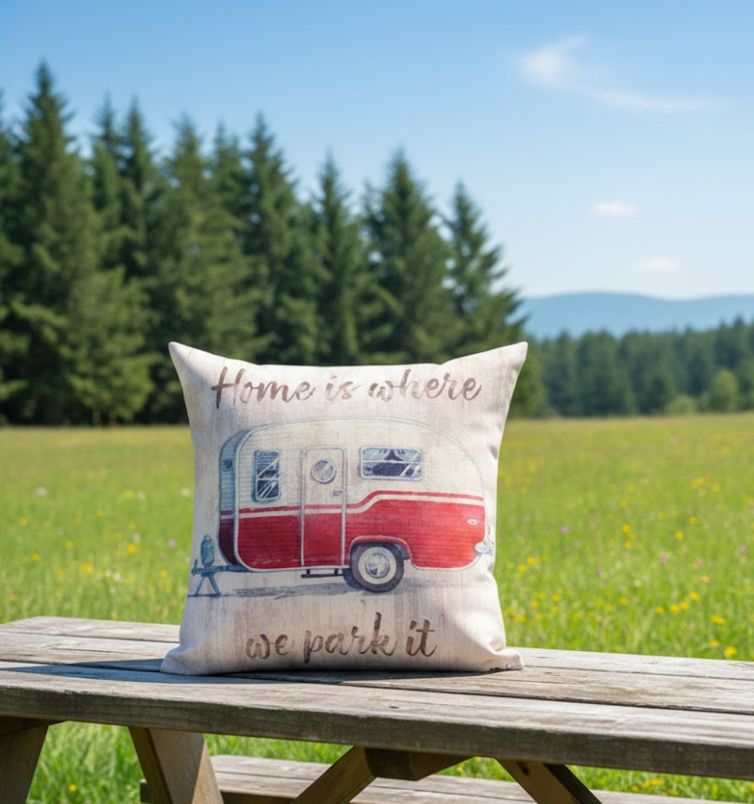 SKU - MWWSLCHPIRV Camping Pillow –18 Inch Home Is Where We Park It by Manual Woodworkers