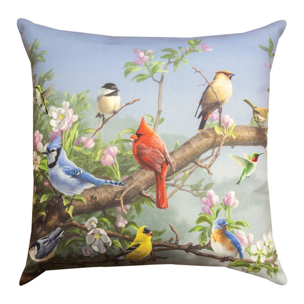 Water-Resistant Pillow Songbirds in Blossoms 18 Inch by Manual Woodworkers