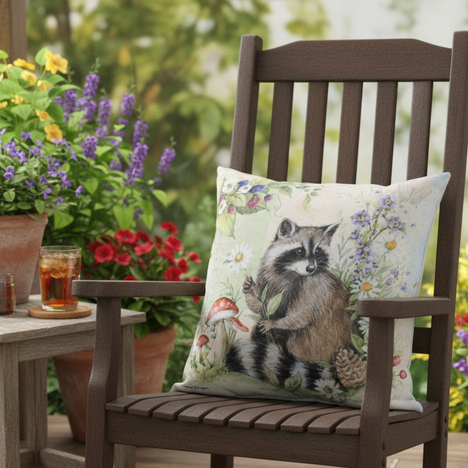 Woodland Raccoon Climaweave Accent Pillow – 18 Inch by Manual Woodworkers