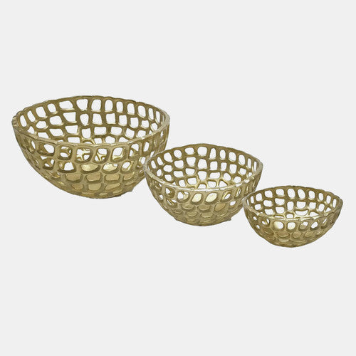 SKU - SBH-17738Metal, S/3, 9/10/12" Pierced Bowls, Gold