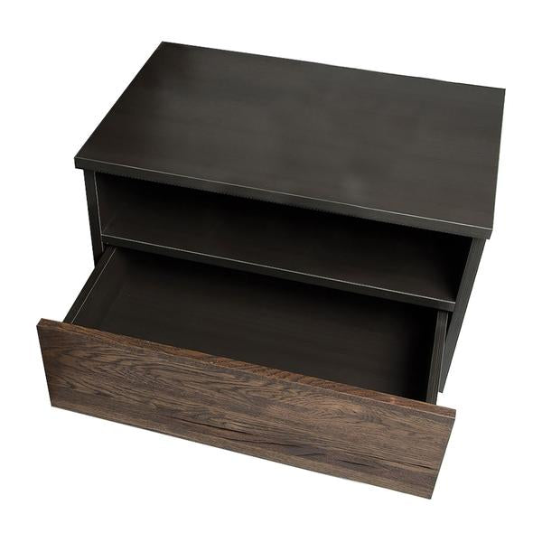 Complement your bed with this eye catching contemporary style Nightstand. The sturdy wooden frame of the Nightstand has an oak finish with grain details, while the open compartment and a drawer offer you ample storage for your bedtime essentials.