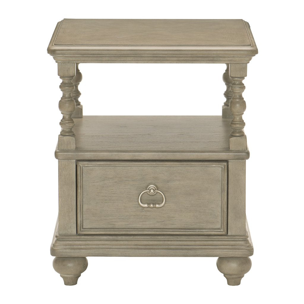 Benzara 1 Drawer End Table with 1 Open Shelf and Decorative Pilasters, Gray