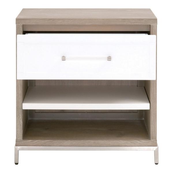 Benzara 1 Drawer Nightstand with Metal Base and Adjustable Shelf, Gray and White