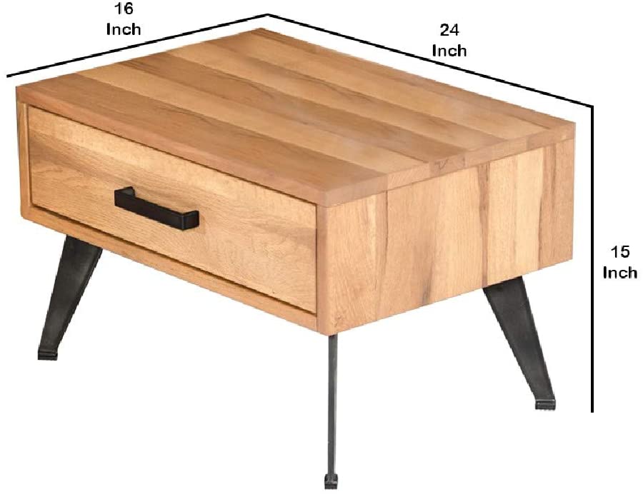Benzara BM214756 Single Drawer Wooden Nightstand with Metal Handle and Angled Legs, Brown