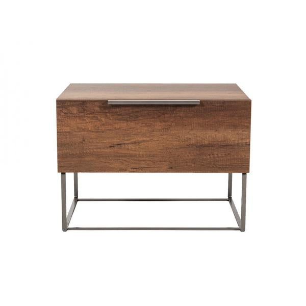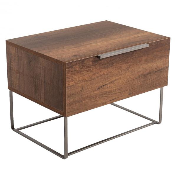 Bring style to your bedroom with this Nightstand. Constructed with solid wood in brown color finish, this nightstand strikes rectangular silhouette featuring thick steel frame for stable support . The single drawer offers storage for smaller accessories, making it a perfect addition for any bedroom.