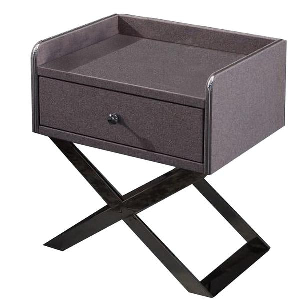Benzara 1 Drawer Wooden Nightstand with X Shaped Metal Base, Gray and Chrome
