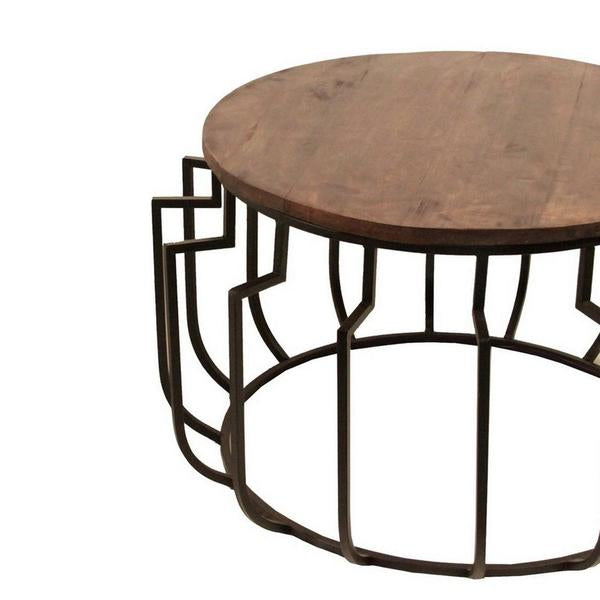 Benzara 2 Piece Wooden Top Table with Flared Metal Base, Brown and Black