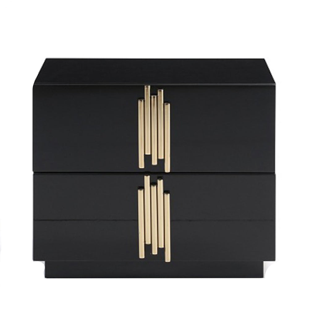 Benzara 2 Storage Drawer Nightstand with Multiple Pipe Handles, Black and Gold
