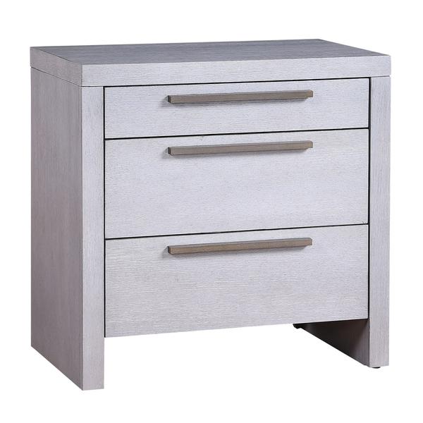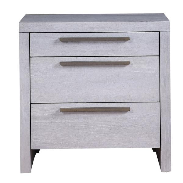 Benzara 3 Drawer Wooden Nightstand with Oversized Metal Bar Pulls, Antique White